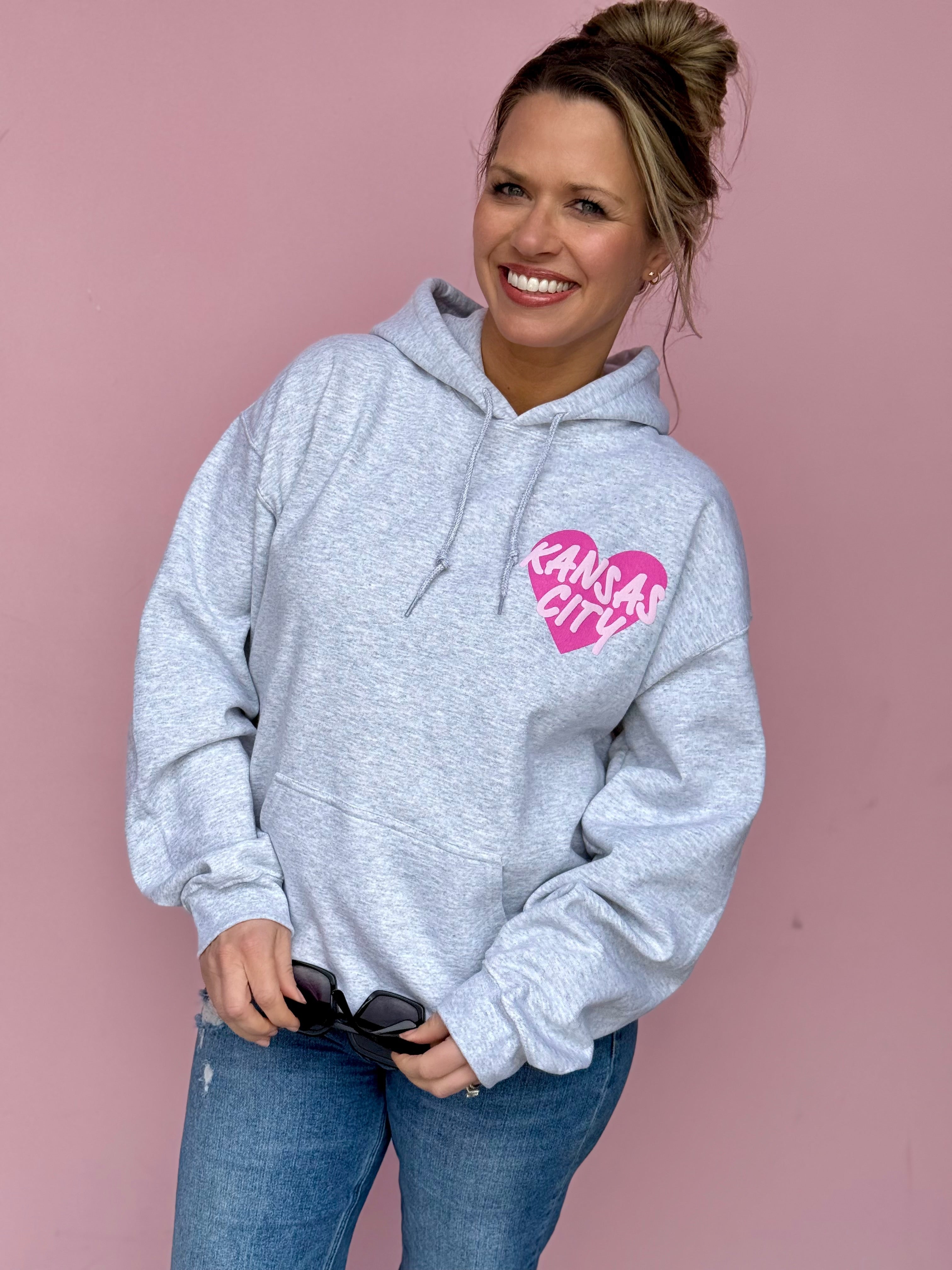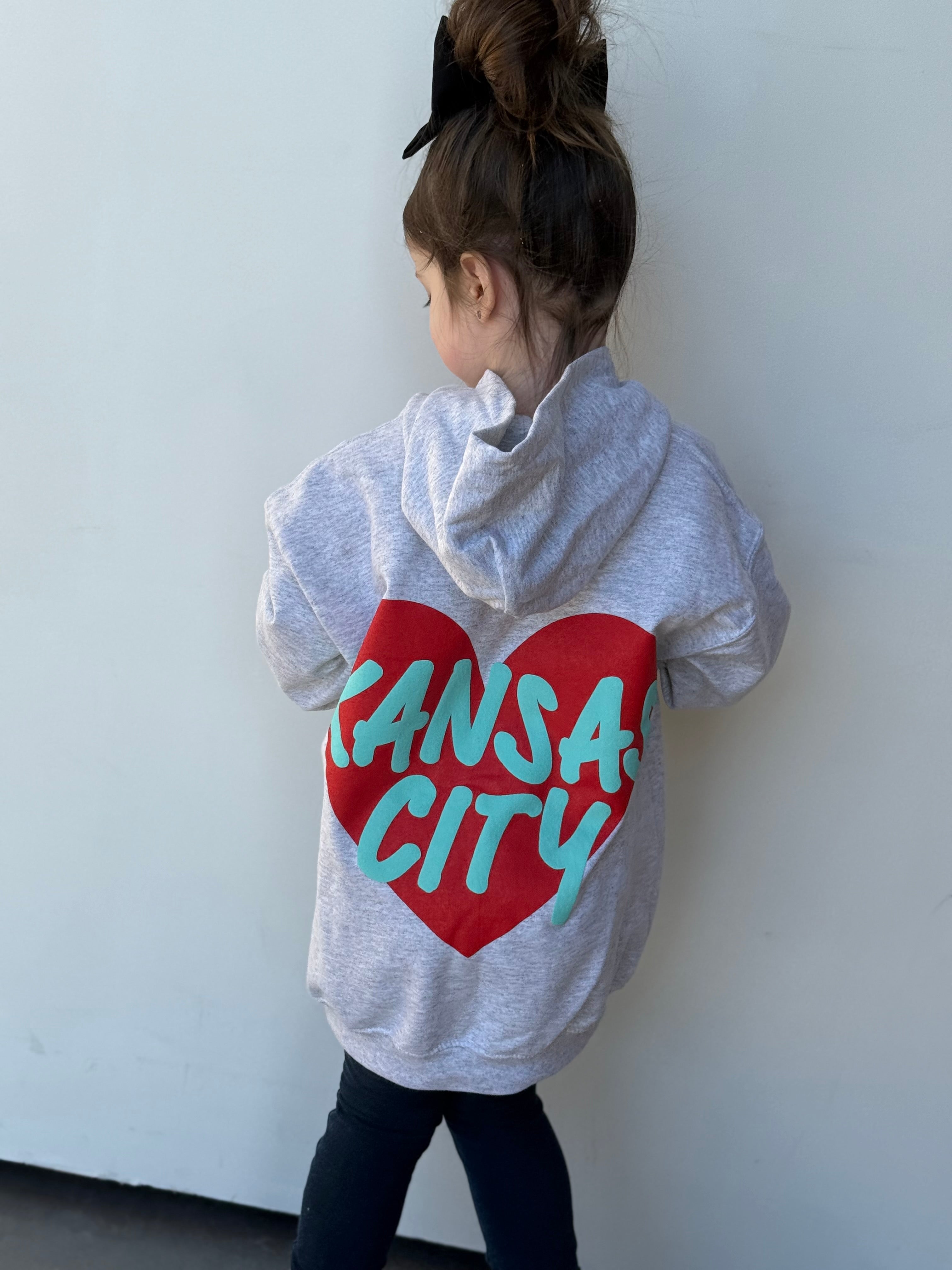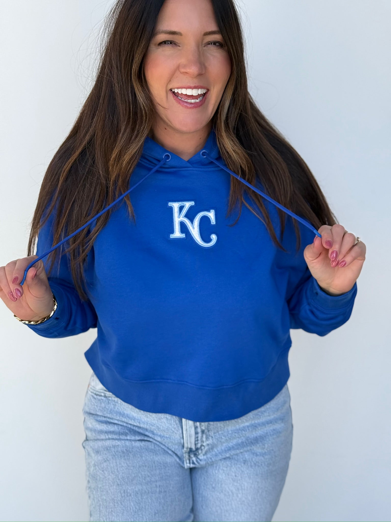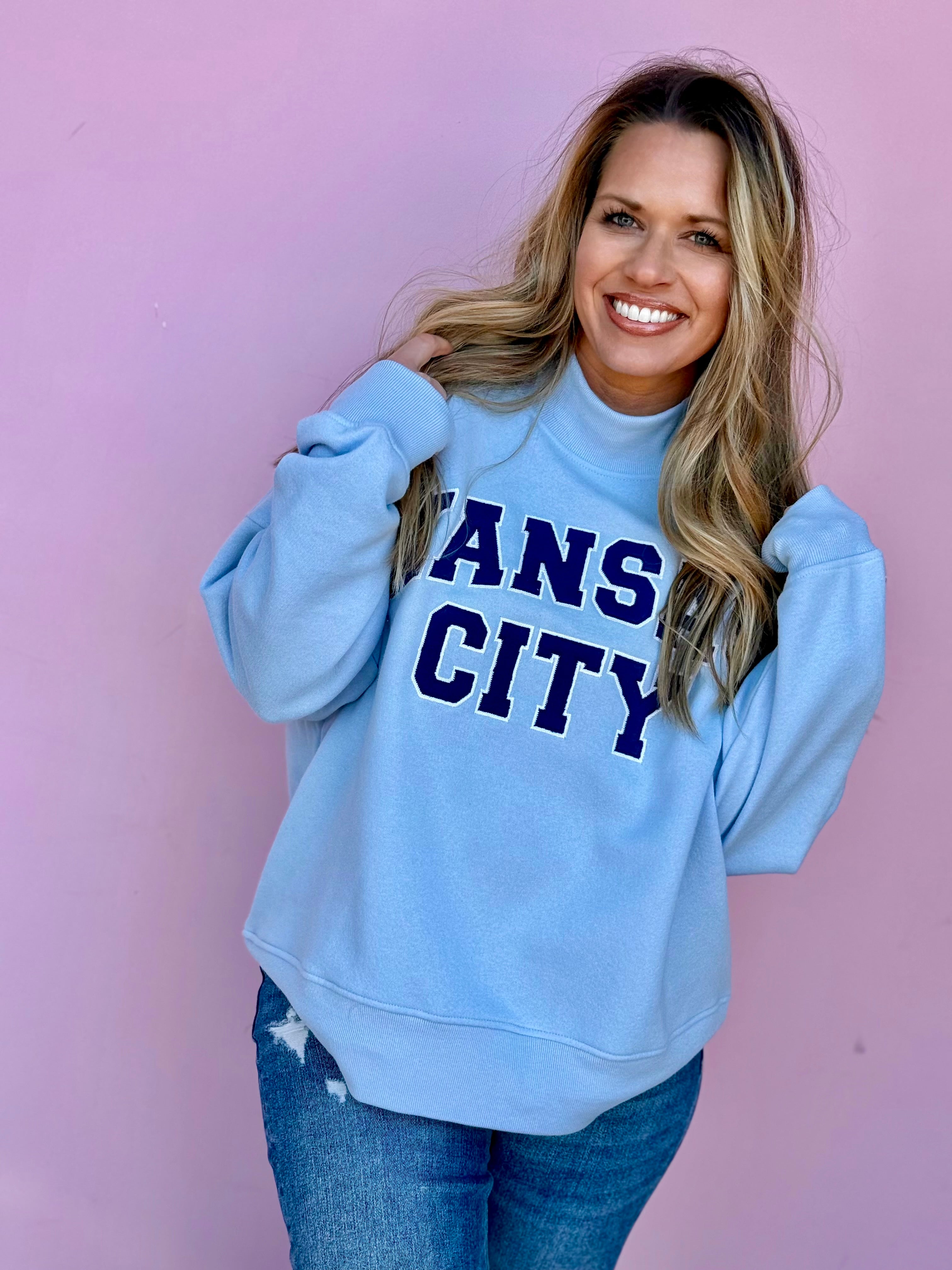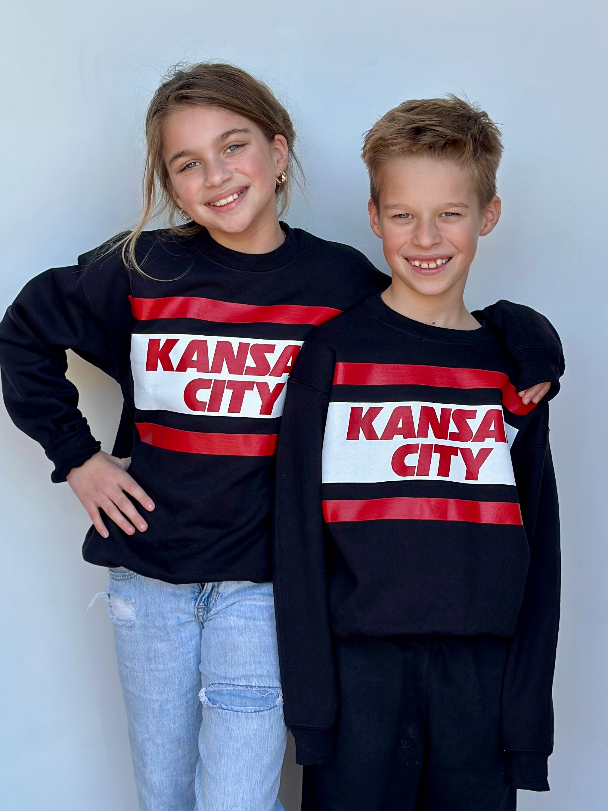 This oversized button-up cardi brings that vintage varsity vibe with a bold KC twist. Made in a vibrant game-day red with gold and white striping on the sleeves and hem, it features a detailed embroidered helmet patch on the front and “Kansas City” across the back for the ultimate fan finish.