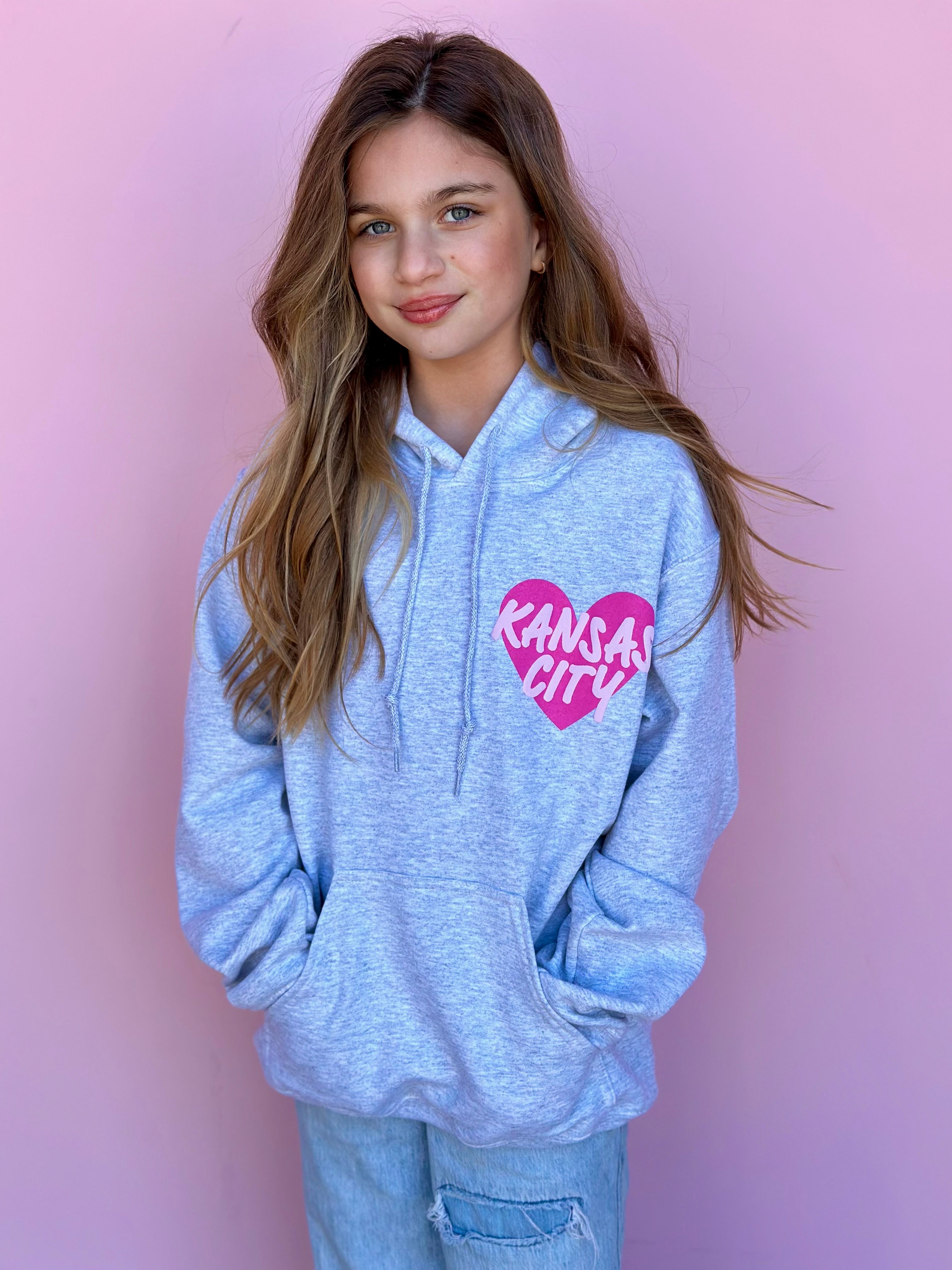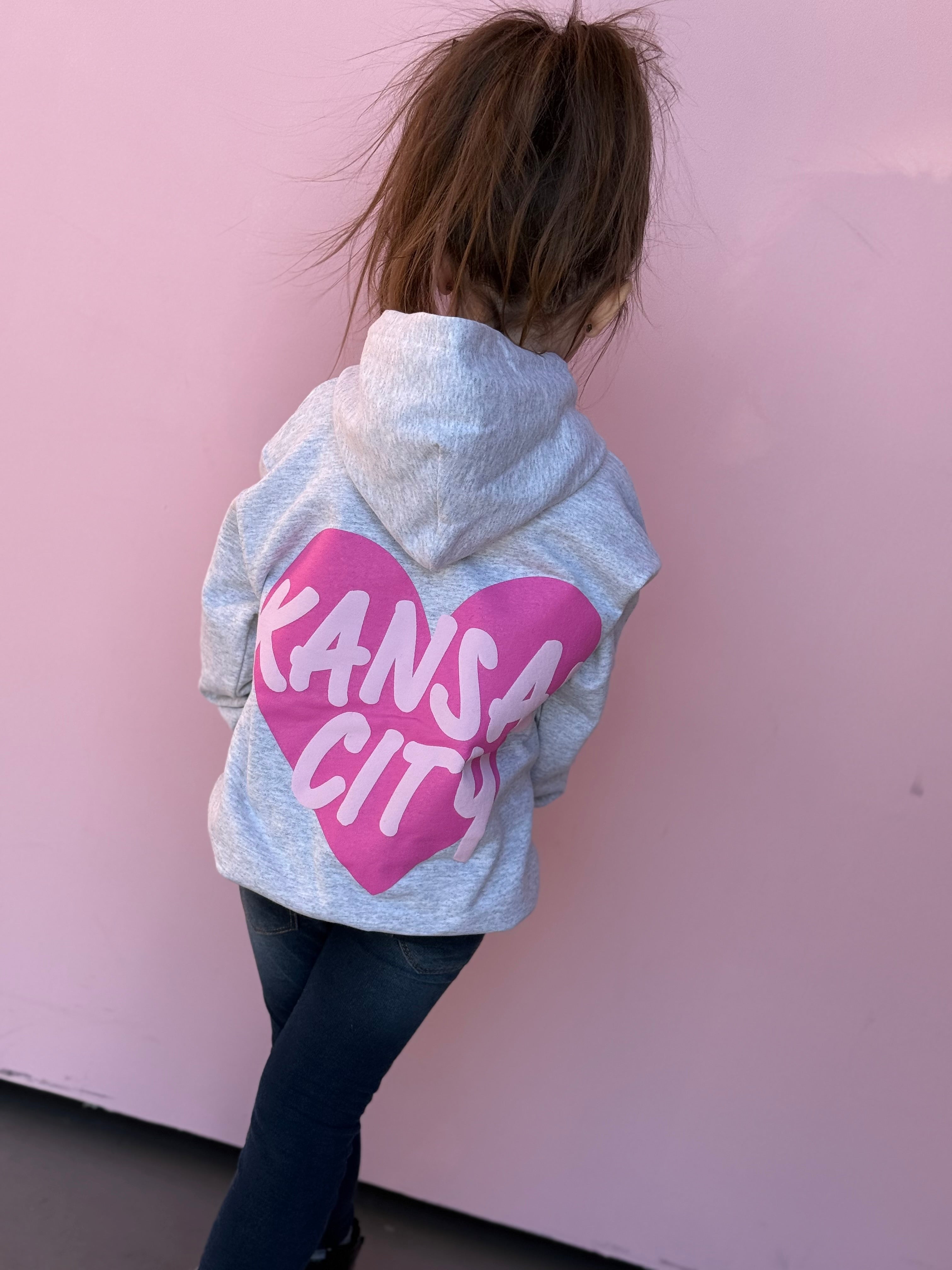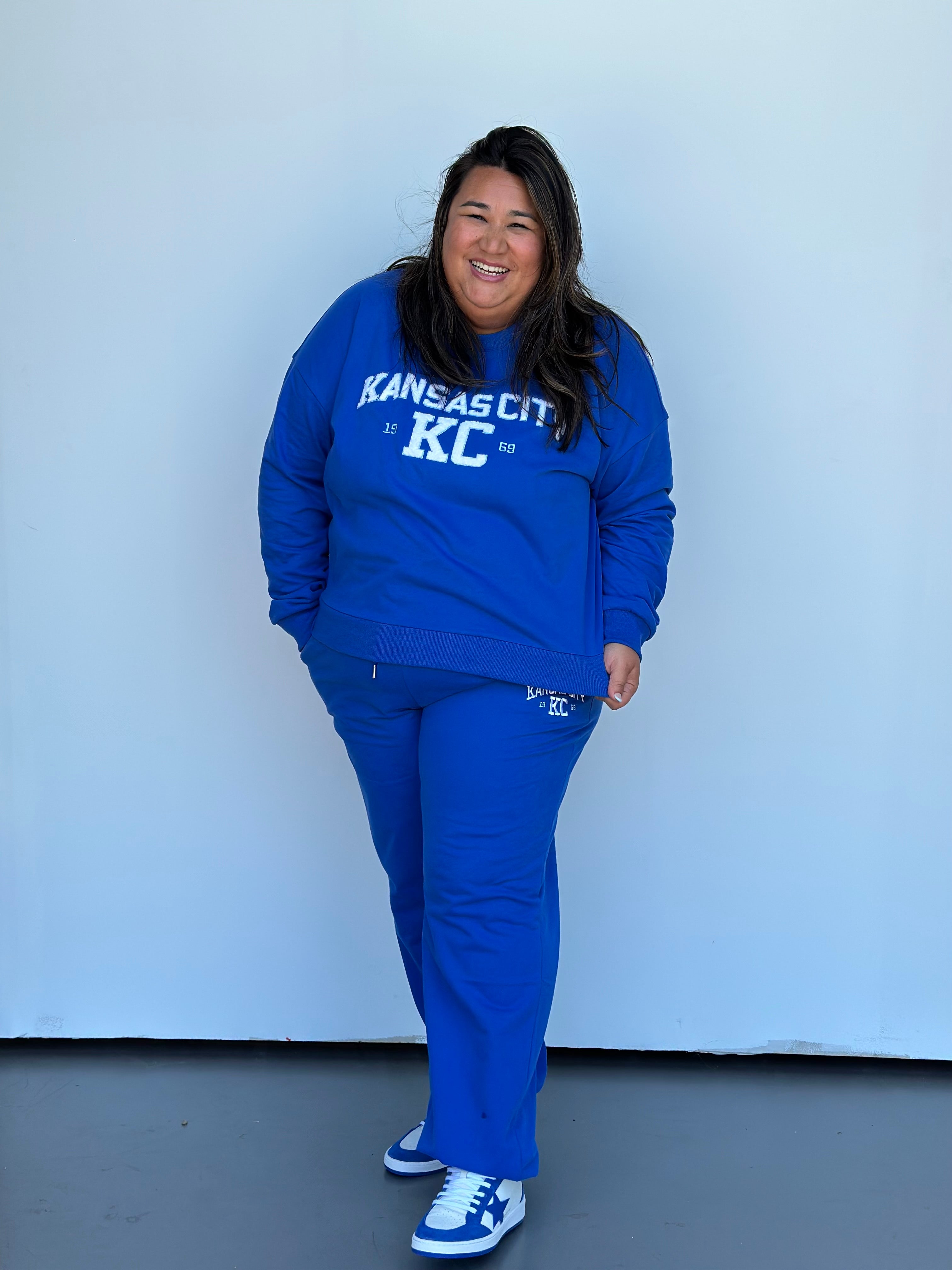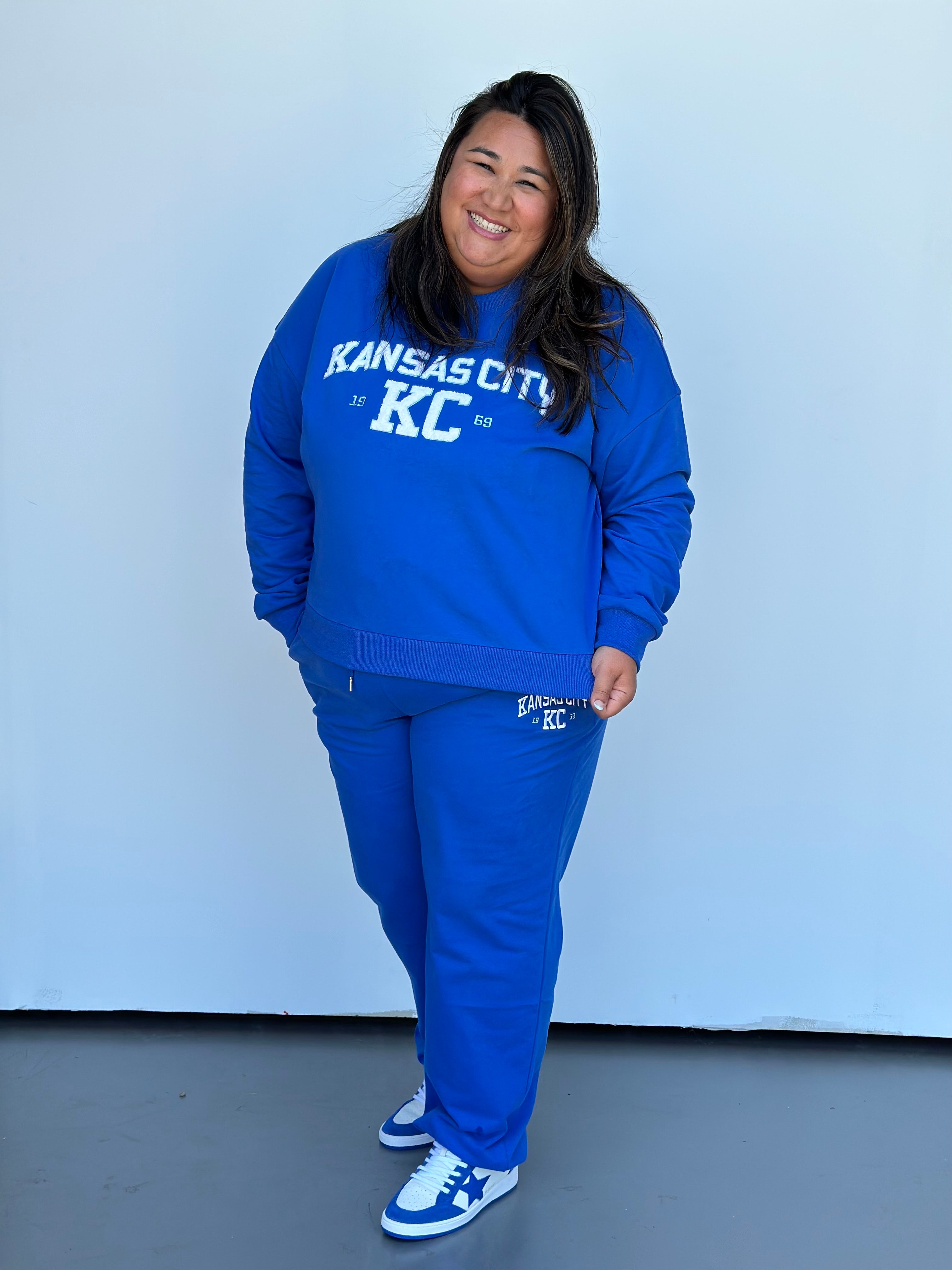 This oversized button-up cardi brings that vintage varsity vibe with a bold KC twist. Made in a vibrant game-day red with gold and white striping on the sleeves and hem, it features a detailed embroidered helmet patch on the front and “Kansas City” across the back for the ultimate fan finish.