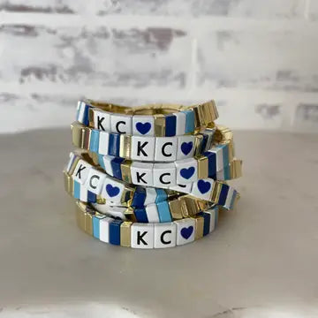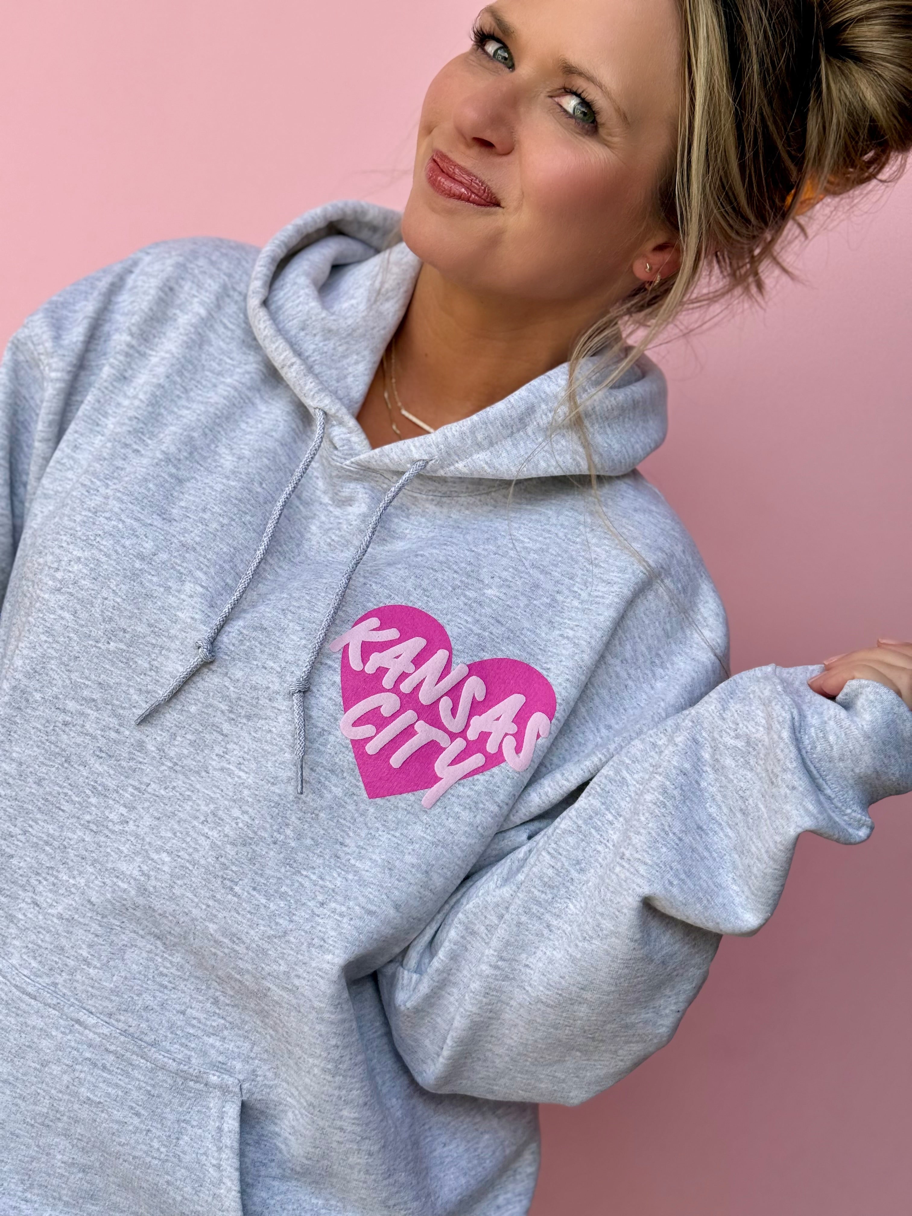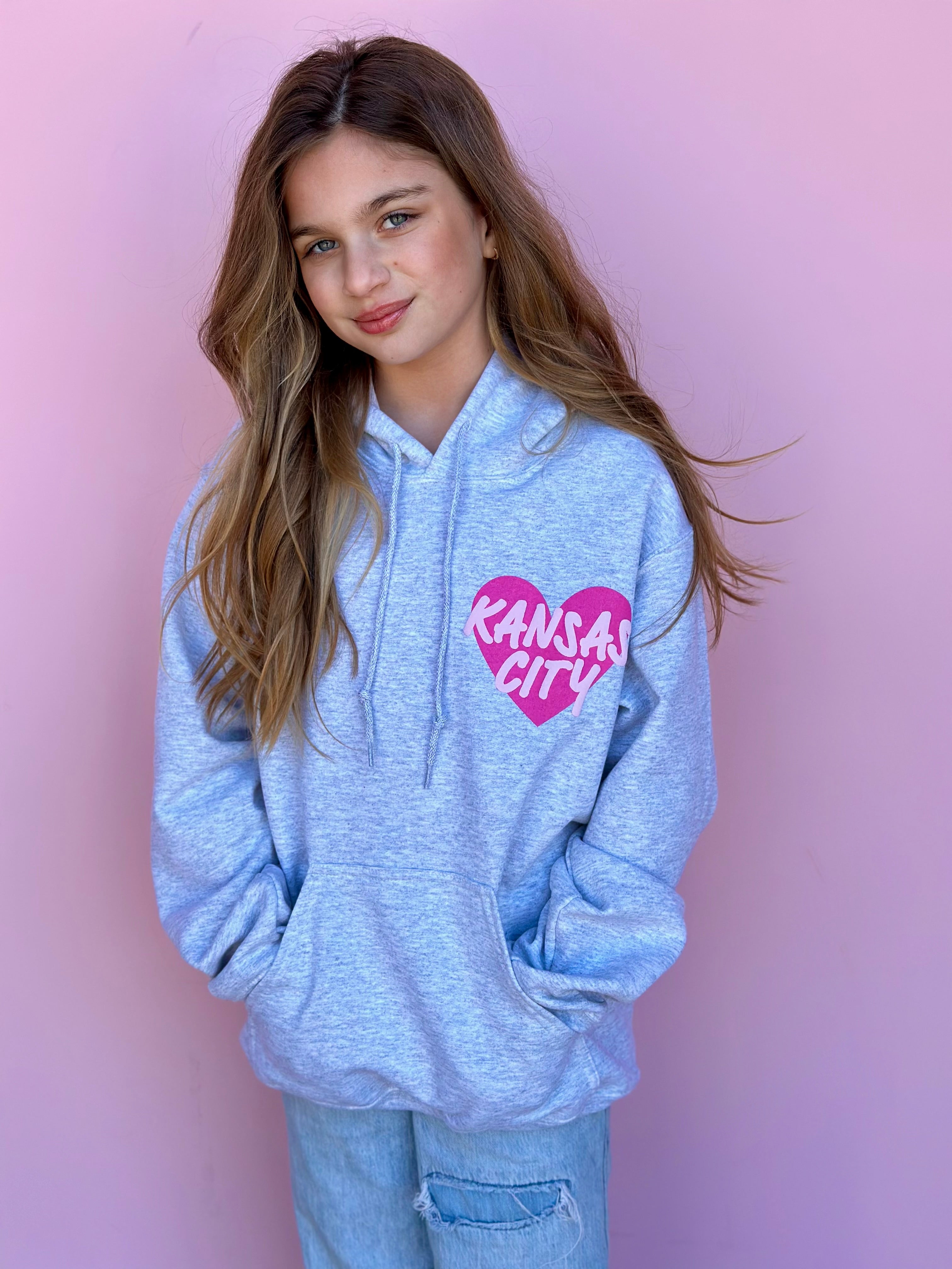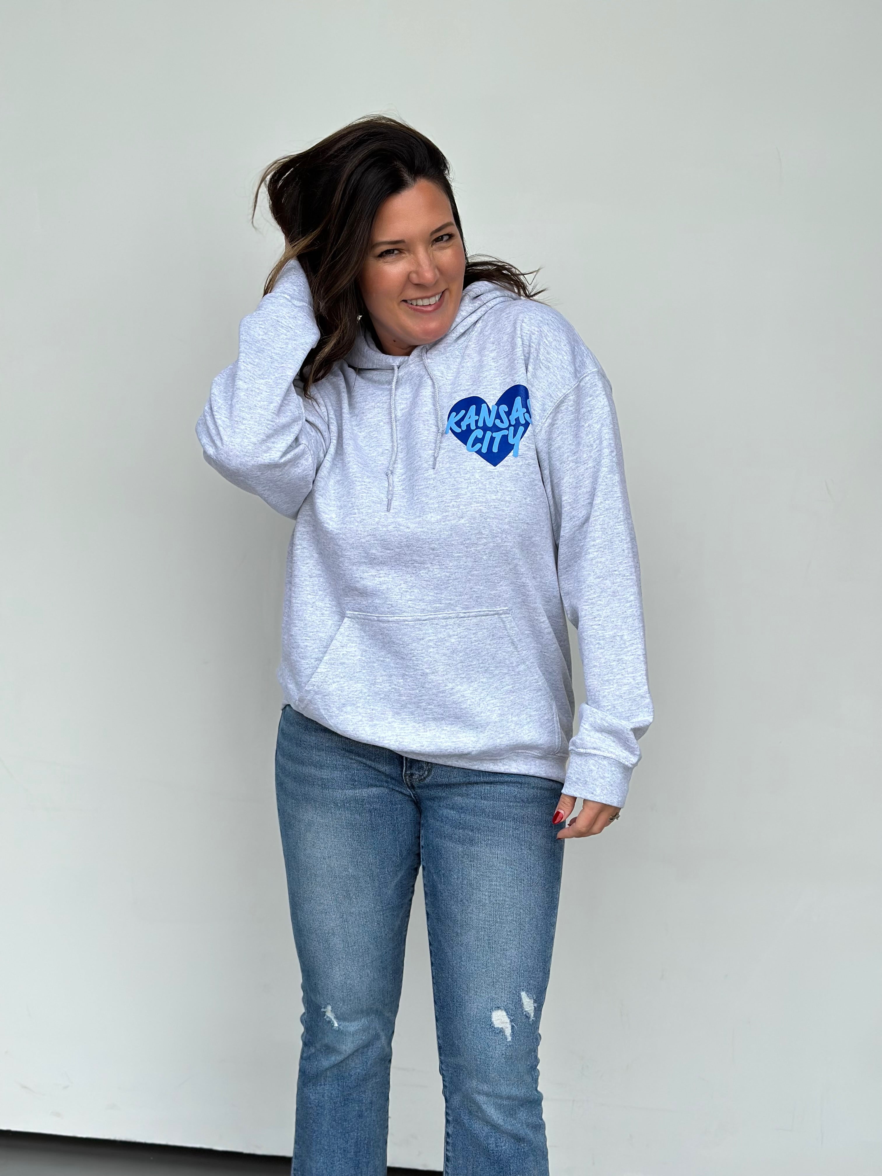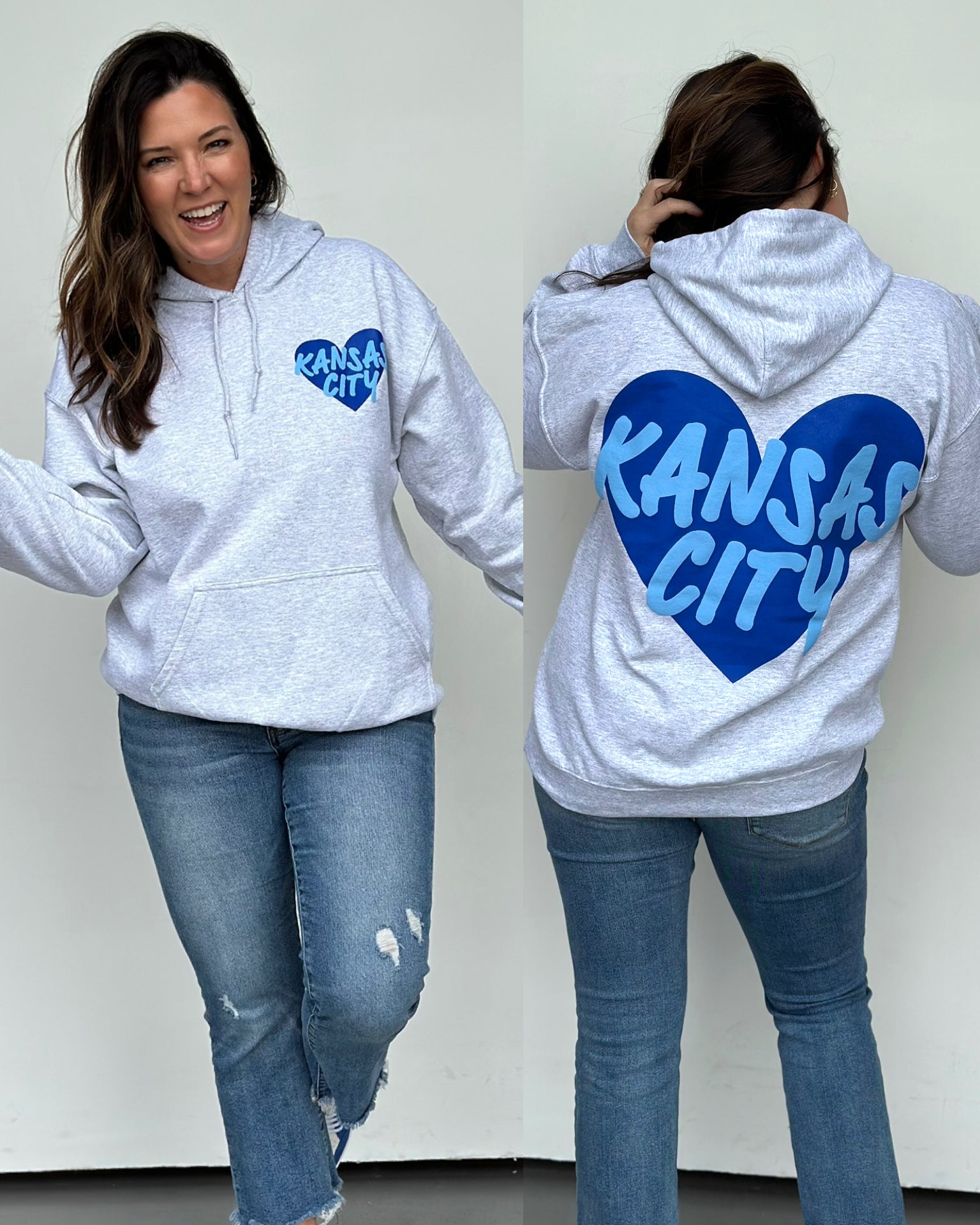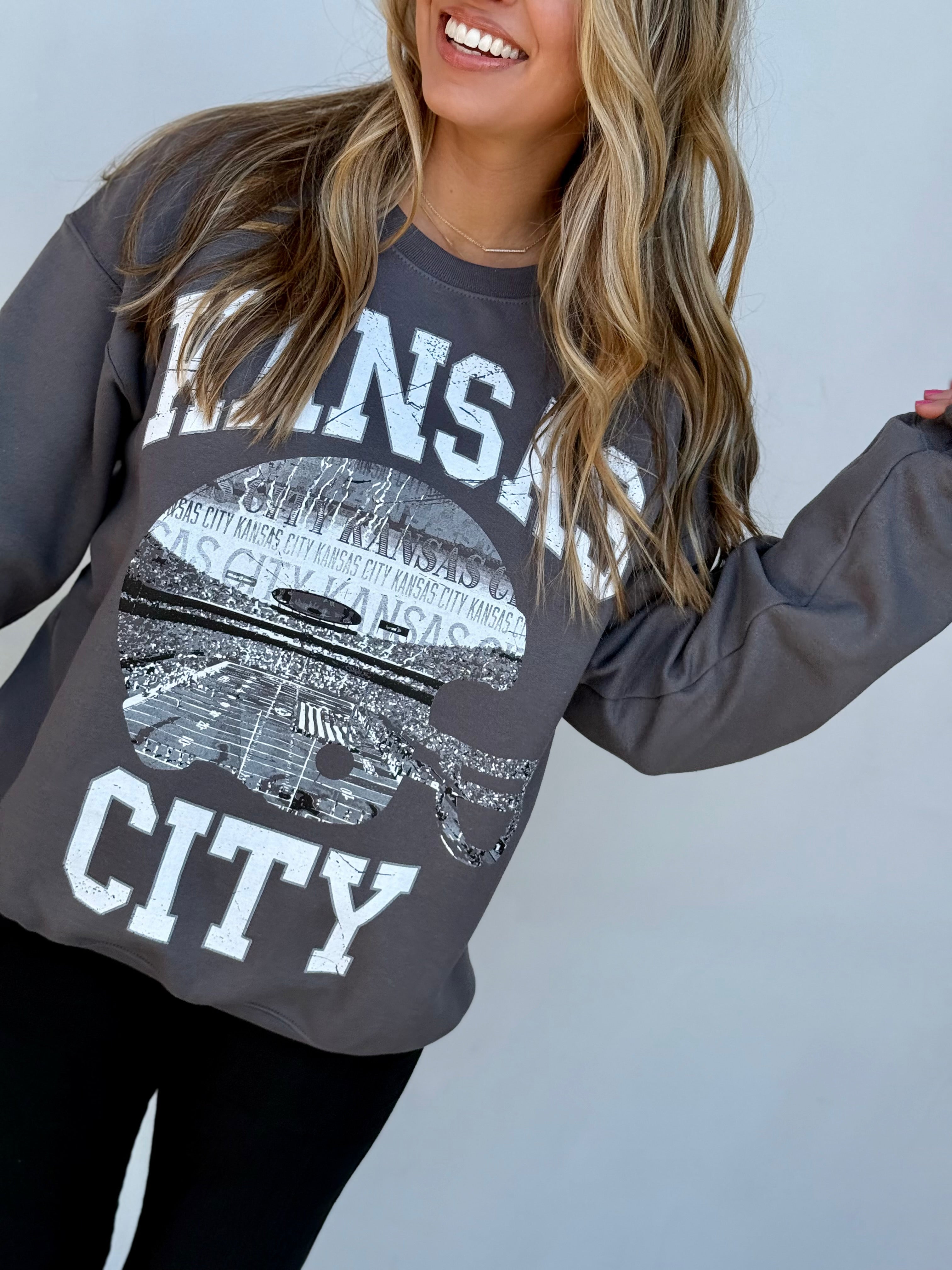 This oversized button-up cardi brings that vintage varsity vibe with a bold KC twist. Made in a vibrant game-day red with gold and white striping on the sleeves and hem, it features a detailed embroidered helmet patch on the front and “Kansas City” across the back for the ultimate fan finish.