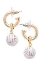 Volleyball Enamel Drop Hoop Earrings in White