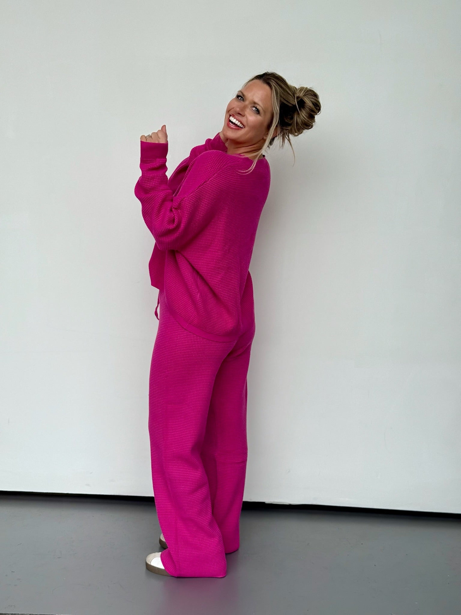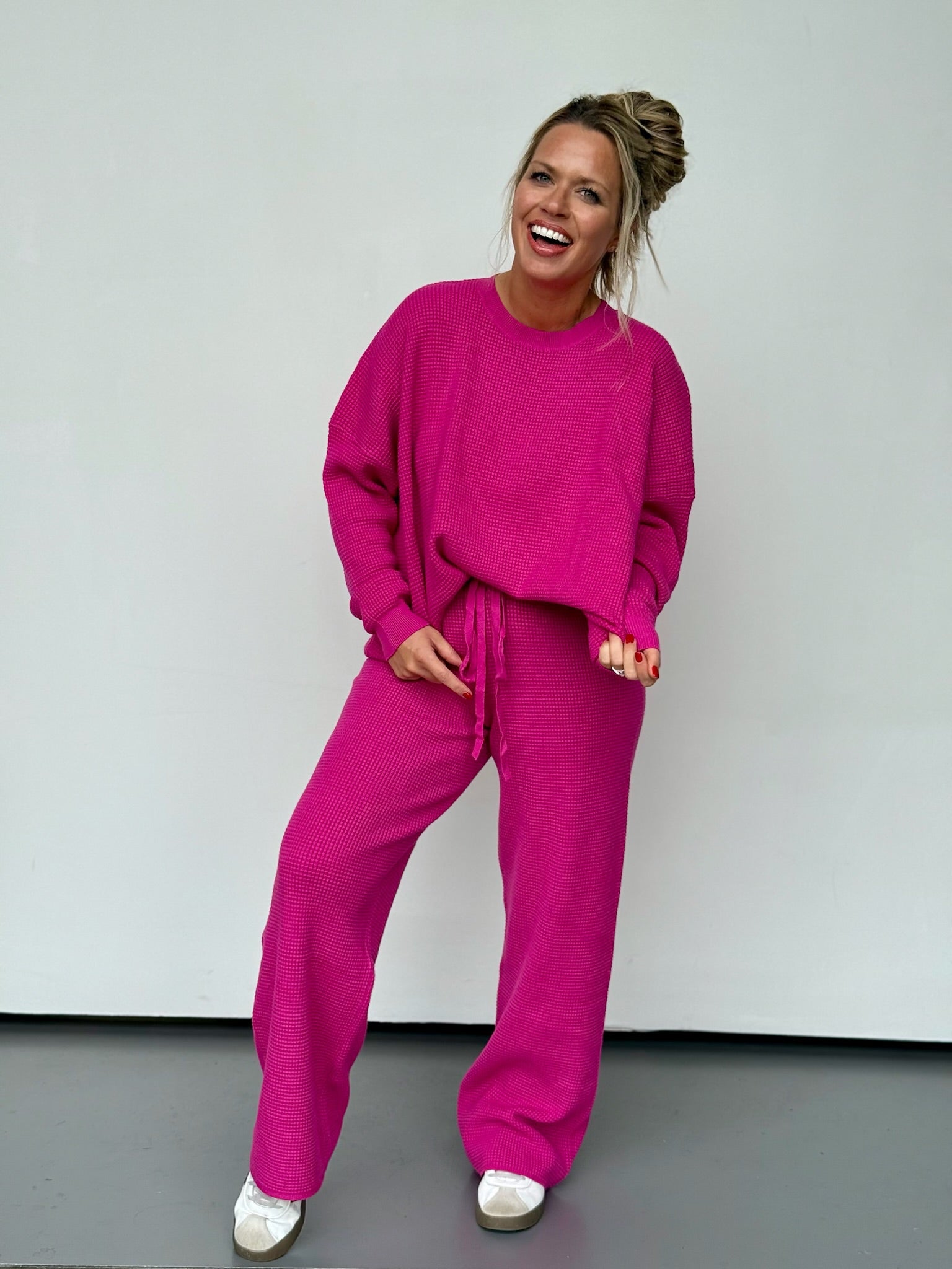 Slip into cozy comfort with our Rose Waffle Knit Pants! Featuring an ultra-soft waffle knit texture and a thicker waistband with an adjustable tie, these pants promise a perfect fit that's true to size. Whether lounging or out and about, enjoy playful style and all-day ease wrapped in warmth and softness.