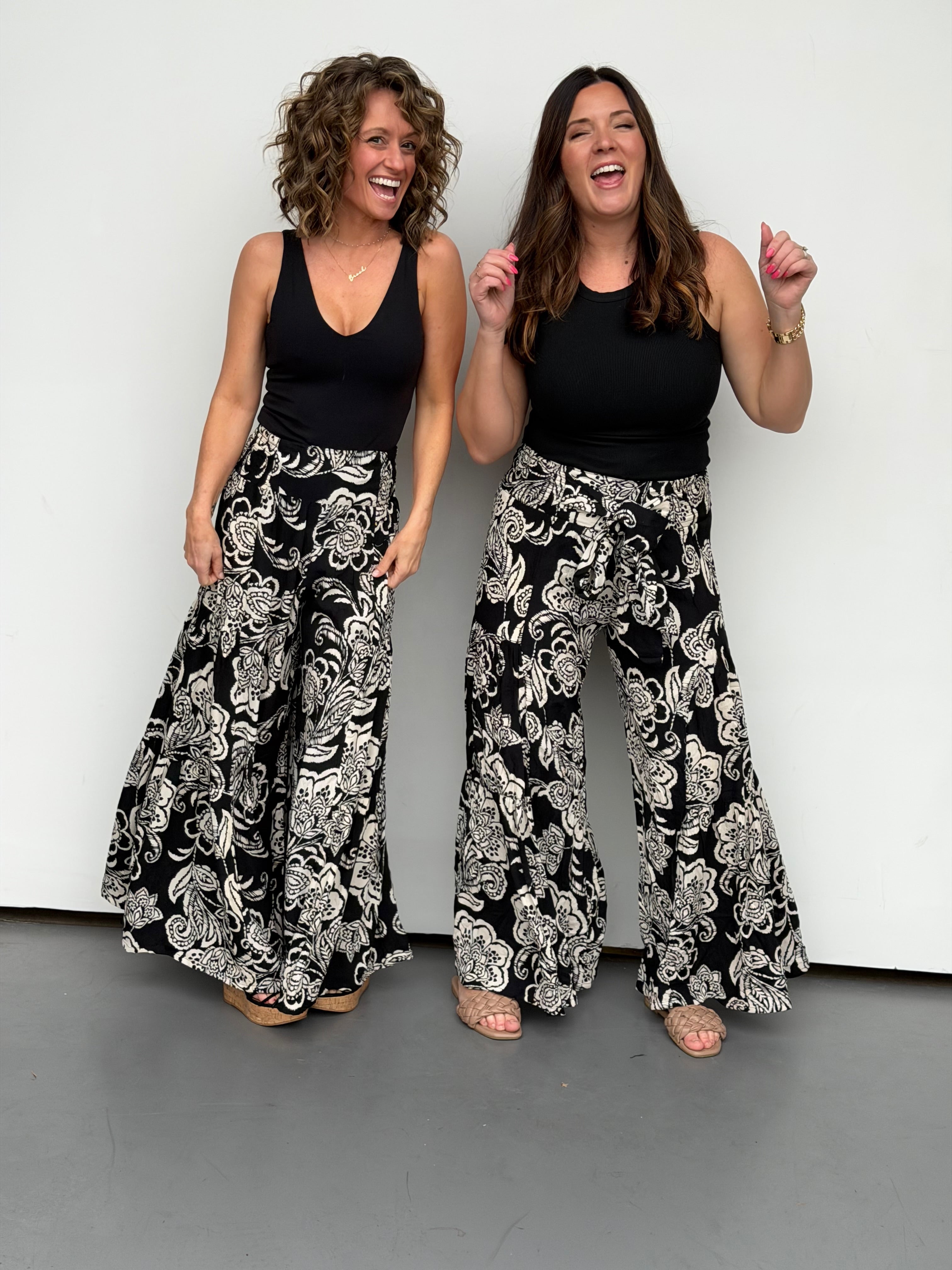 Effortless comfort meets relaxed style with these Sandbar Wide Leg Pants. Featuring a lightweight fabric that drapes beautifully, an elastic waist for all-day ease, and a front tie detail for adjustable fit, these pants are perfect for warm weather wear. The generous wide-leg silhouette flatters all frames—we recommend sizing up if you're tall for optimal length and movement. Slip them on for a breezy, laid-back look that transitions seamlessly from day to night.