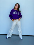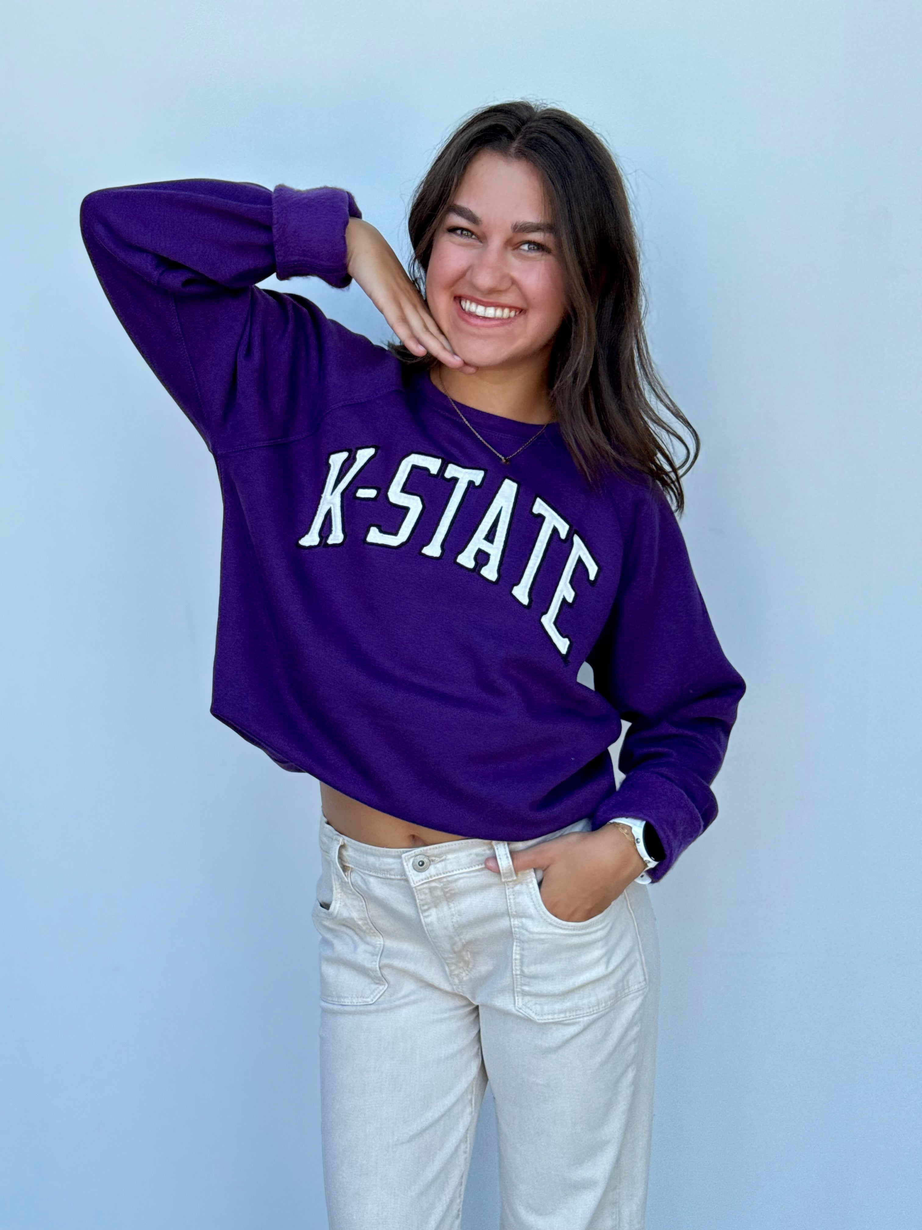 Get ready to show off your wildcat pride with the K-State Essential Crew! This crewneck sweatshirt features an appliqué design that proudly displays your love for K-State. Whether you're heading to the game or just lounging around campus, this comfy and stylish top is a must-have for any true Wildcat. Go team!