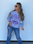 Our 50/50 Preshrunk Cotton/Polyester thrifted graphic sweatshirts are meaningfully distressed. Each piece is one of a kind, and colors/distressing may vary from shirt to shirt.