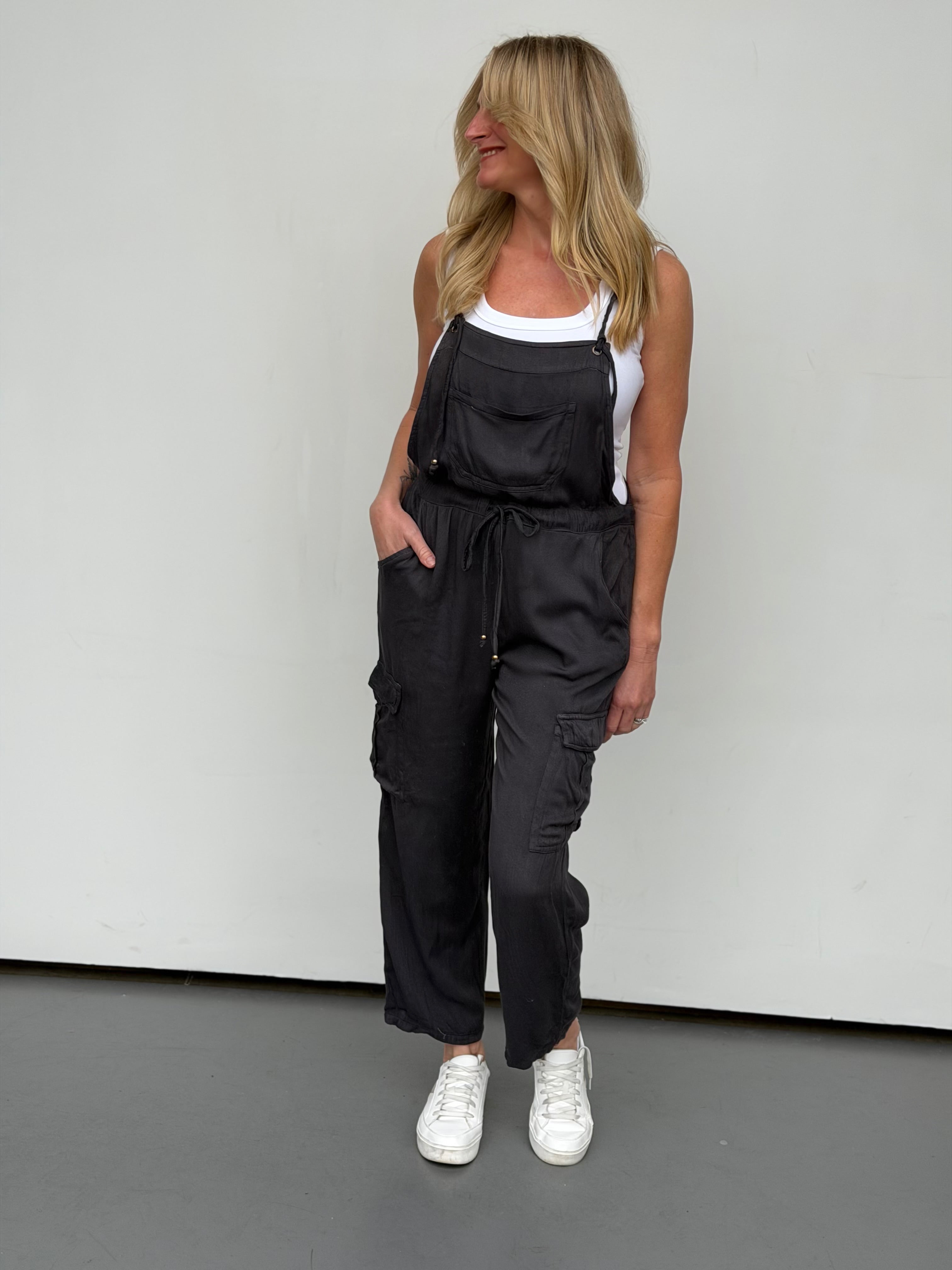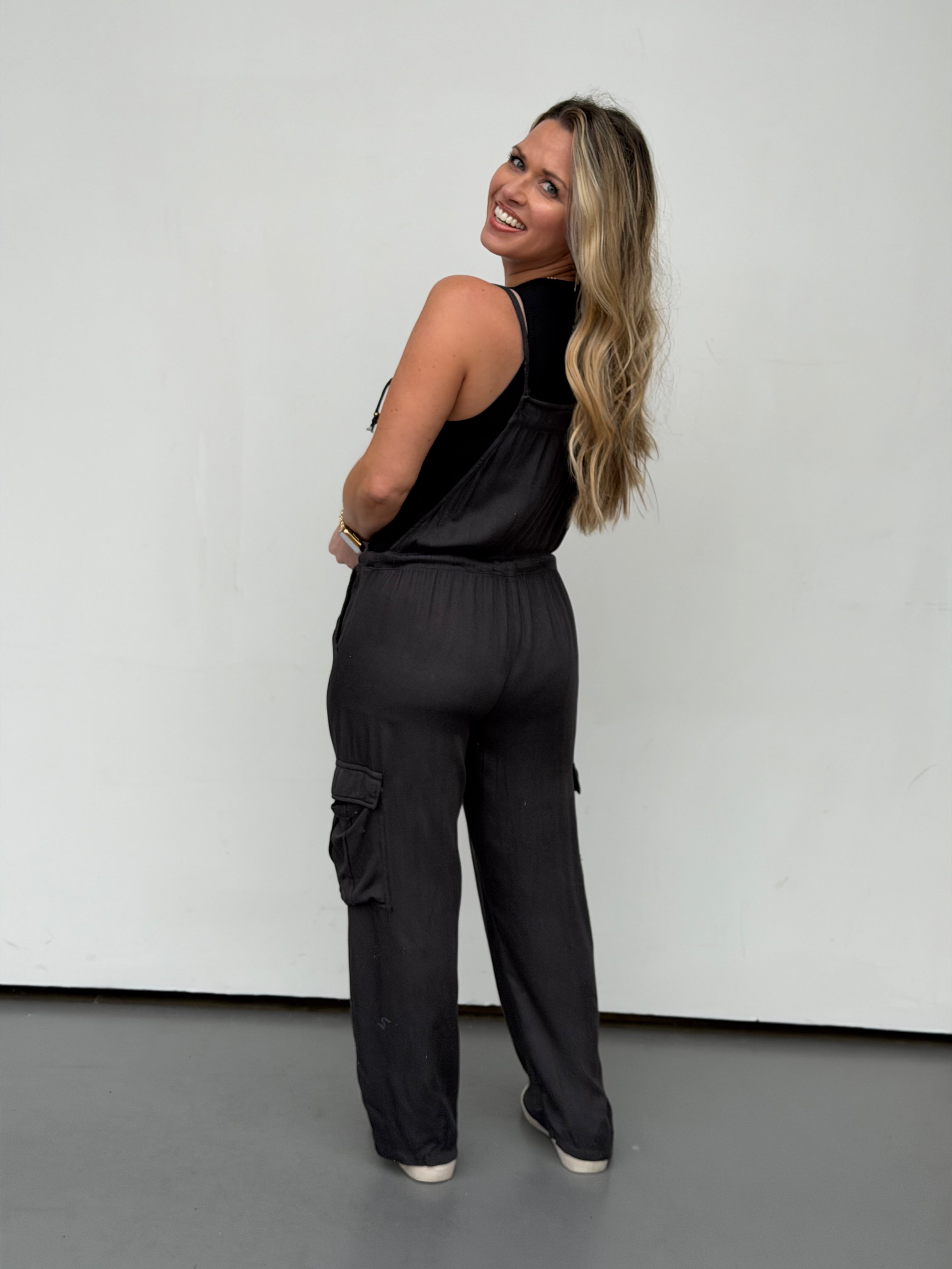 Effortless style meets comfort in the Cora Jumpsuit. Featuring adjustable tie straps and waist for a customized fit, plus functional pockets to keep essentials close. Lightweight fabric makes it perfect for layering over your favorite tee or tank. Size up for an longer, relaxed fit that works for any occasion.