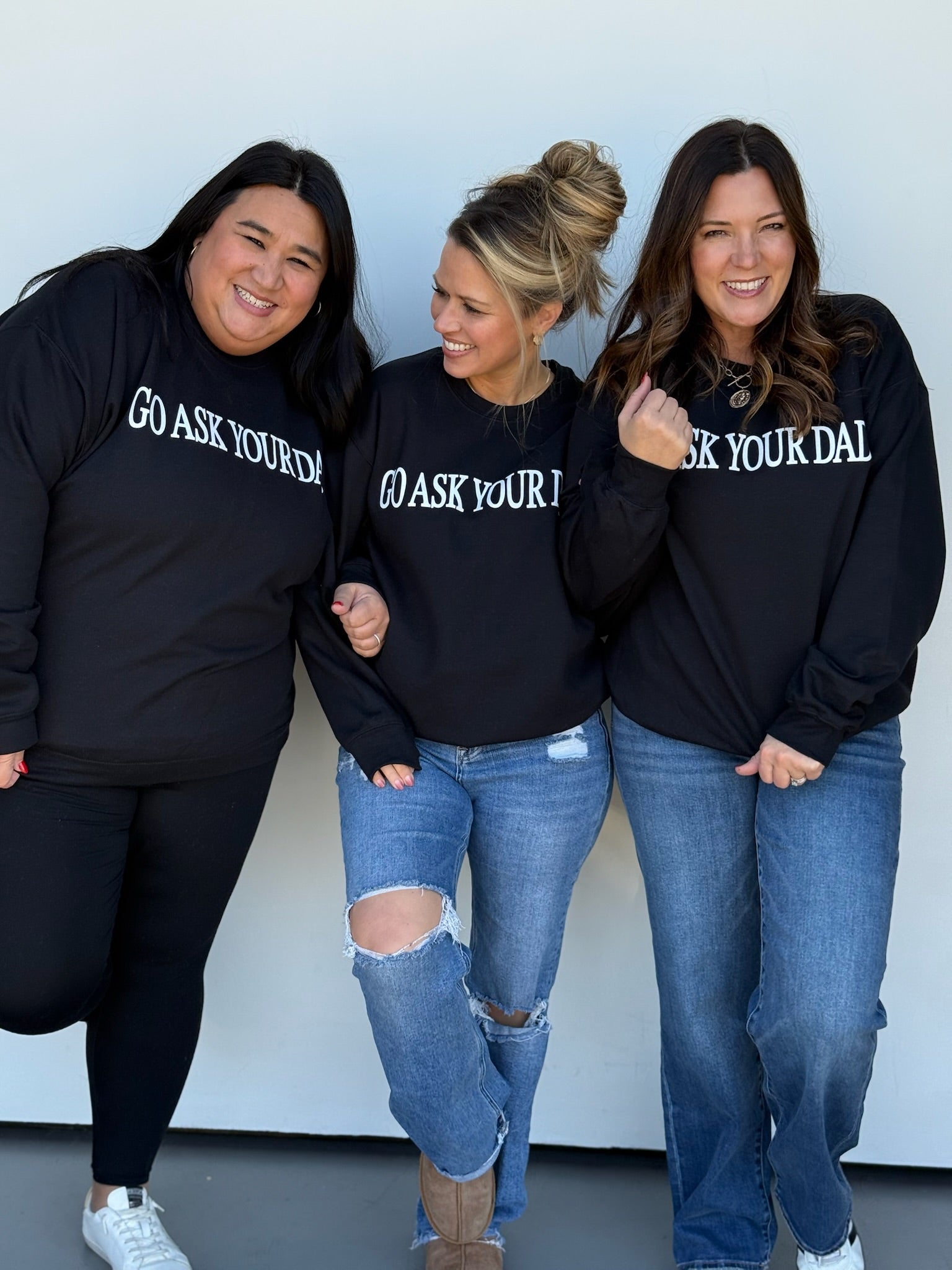 "Let this Go Ask Your Dad sweatshirt do the talking for you (because sometimes it's just easier that way). This quirky crewneck is perfect for those who like to keep it light and playful. Go ahead, ask your dad - and don't forget to wear this sweatshirt while doing so!"