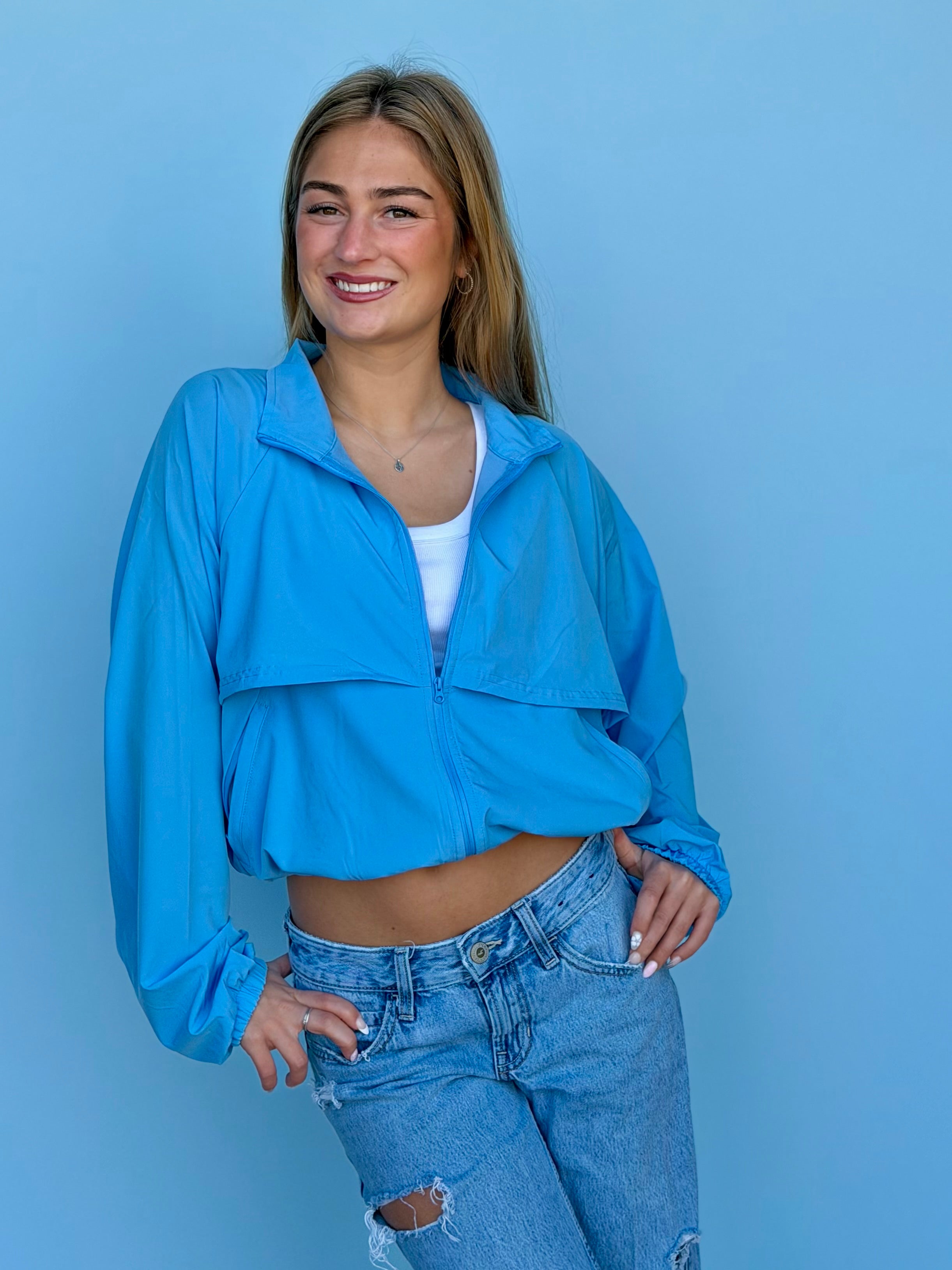 The Swift Move Windbreaker combines lightweight performance with practical design. Featuring mesh backing and mesh panels down the arms for breathability, this jacket keeps you cool during active movement. A full zipper closure provides easy on-and-off convenience, while dual side pockets offer secure storage. The adjustable drawstring at the side lets you customize the fit to your preference. True to size and incredibly light, it's the perfect layer for workouts, outdoor activities, or everyday wear.
