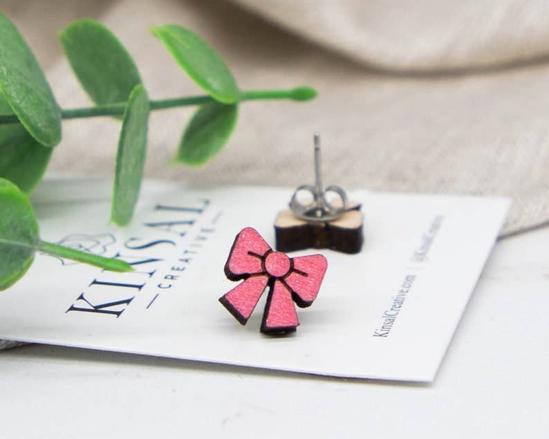 Bow Wood Stud Earrings