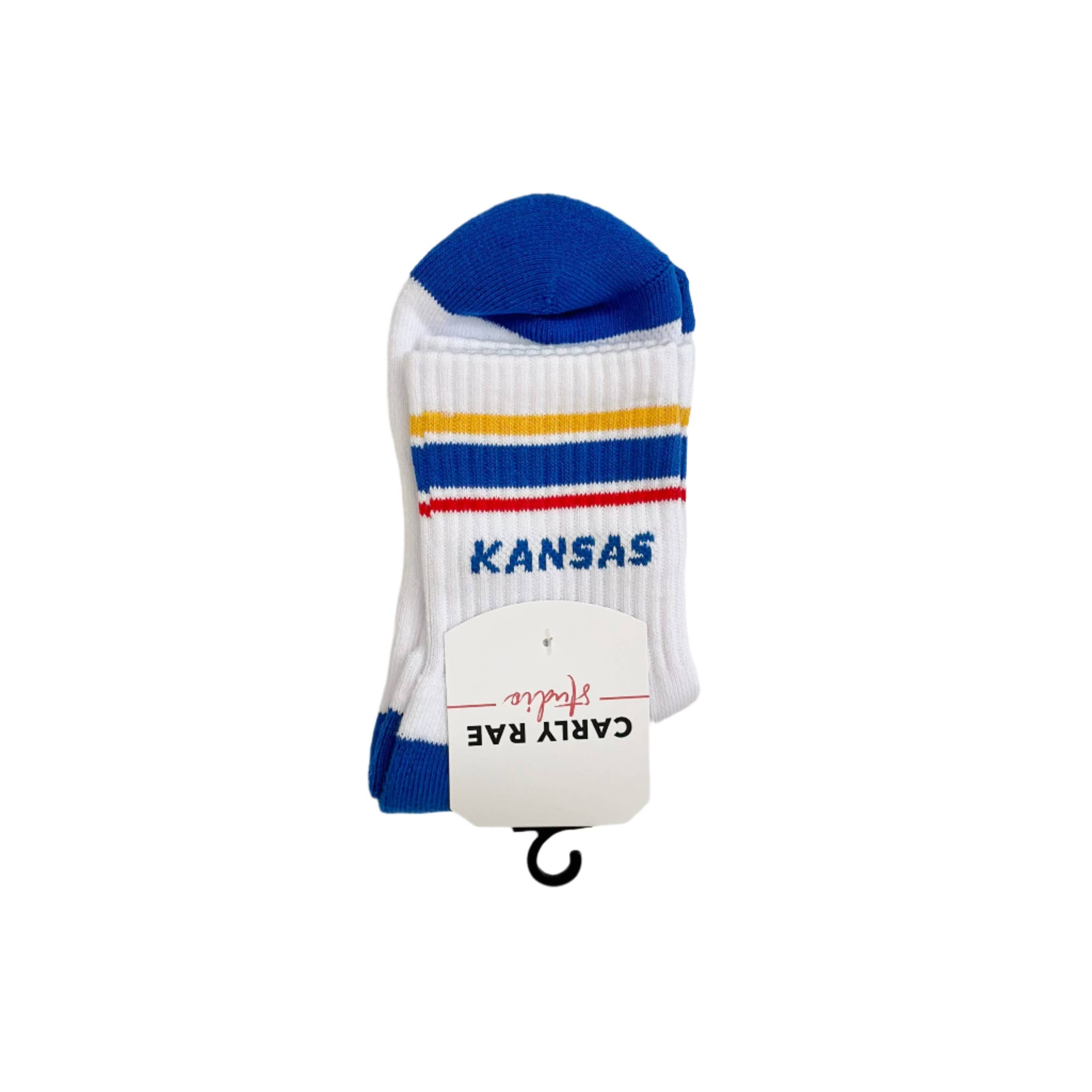 Embrace the vibrant spirit of Kansas with our Crew Socks from Carly Rae Studio. Inspired by the city's lively hues, these socks are a delightful blend of comfort and style. Crafted from a soft cotton blend, they ensure your feet stay cozy throughout the day. Designed to fit women's sizes 6-9 and men's sizes 4.5-8, they make a versatile addition to any wardrobe. The playful colors and whimsical design reflect Carly's love for patterns, nature, and sports. Enjoy a touch of artistic charm with every step you take!