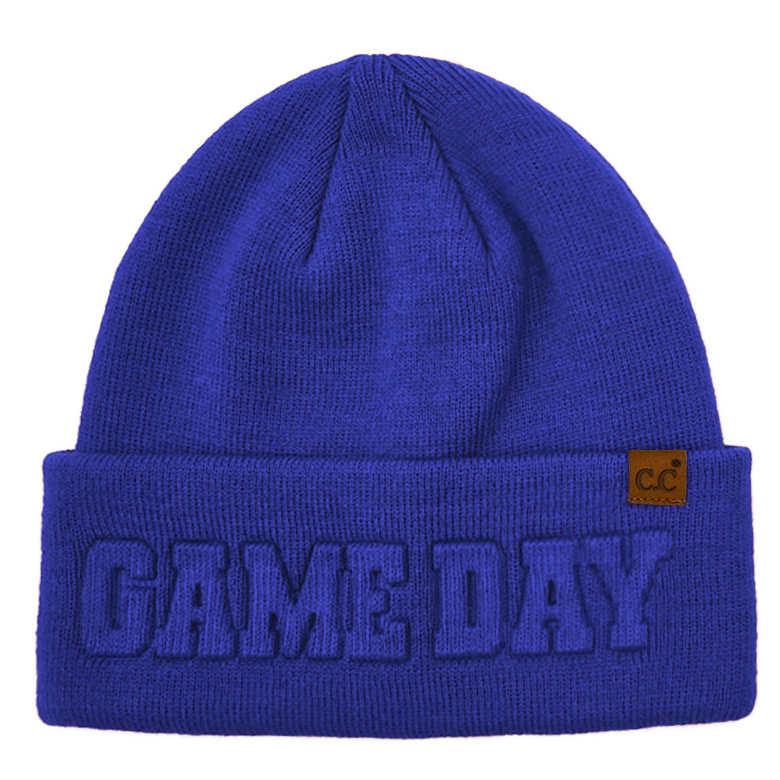 C.C GAME DAY Embossed Lettering Solid Color Cuff Beanie Winter Hat 100% Acrylic 9.5" x 8.75" Cuff 3.5" One Size