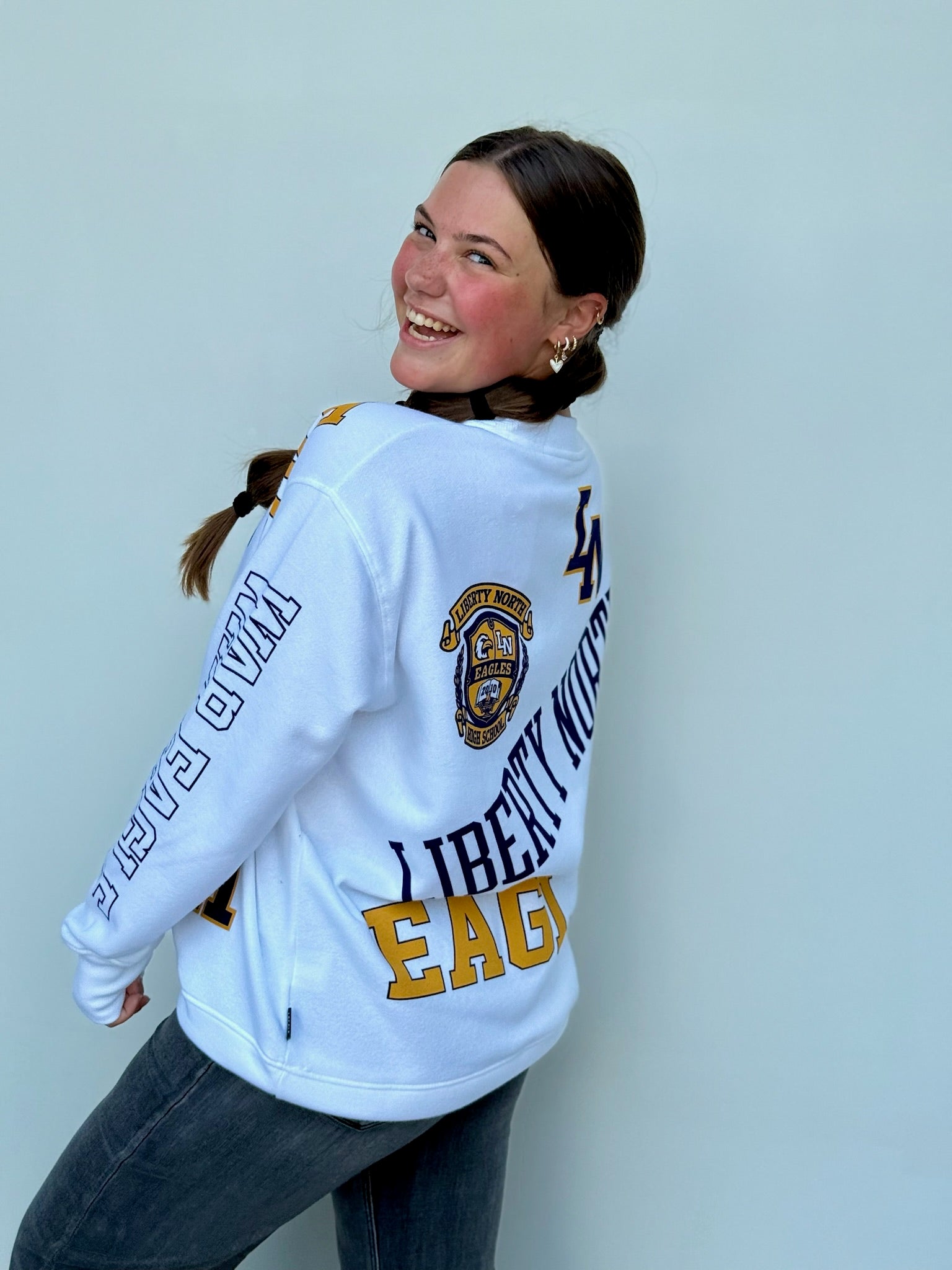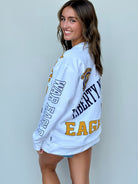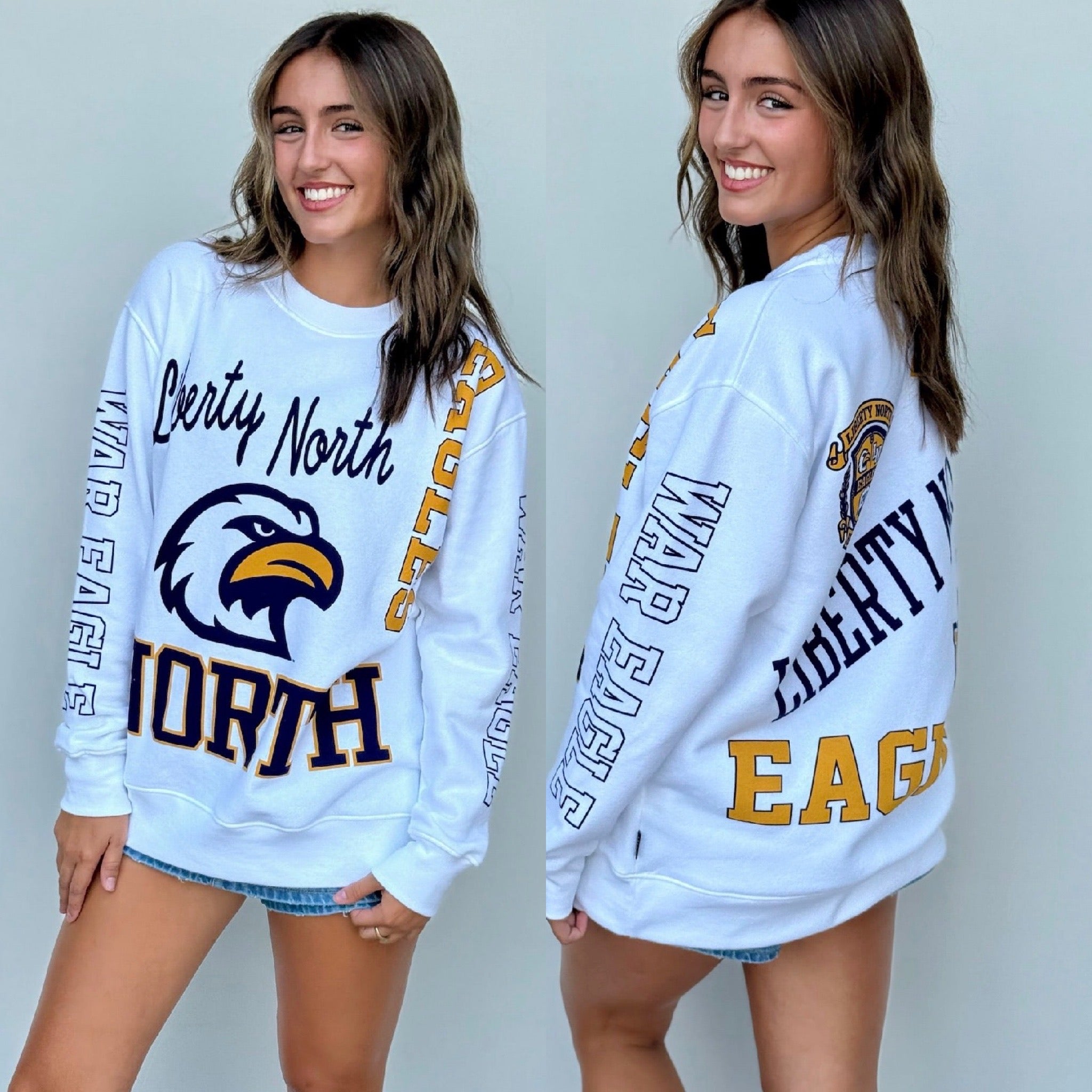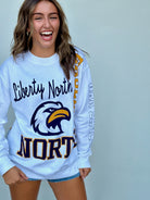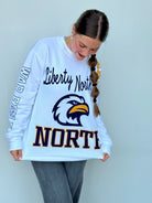 Introducing the North Kelcey Crew, the perfect combination of Liberty and softness! With a fun print featuring eagles, this crew will add a playful touch to any outfit. So go ahead, show off your love for the birds (and your quirky side) with this unique piece.