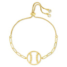 Batter up, baseball and softball fans! Get ready to show your love for the game with our awesome Baseball/Softball Pulley Bracelet. This cool bracelet features a perfectly detailed .75-inch baseball or softball charm right in the center, making it clear you're a true fan (or player!). It's got that luxurious 18k gold plating for a radiant finish that really shines, all set on a delicate link chain.