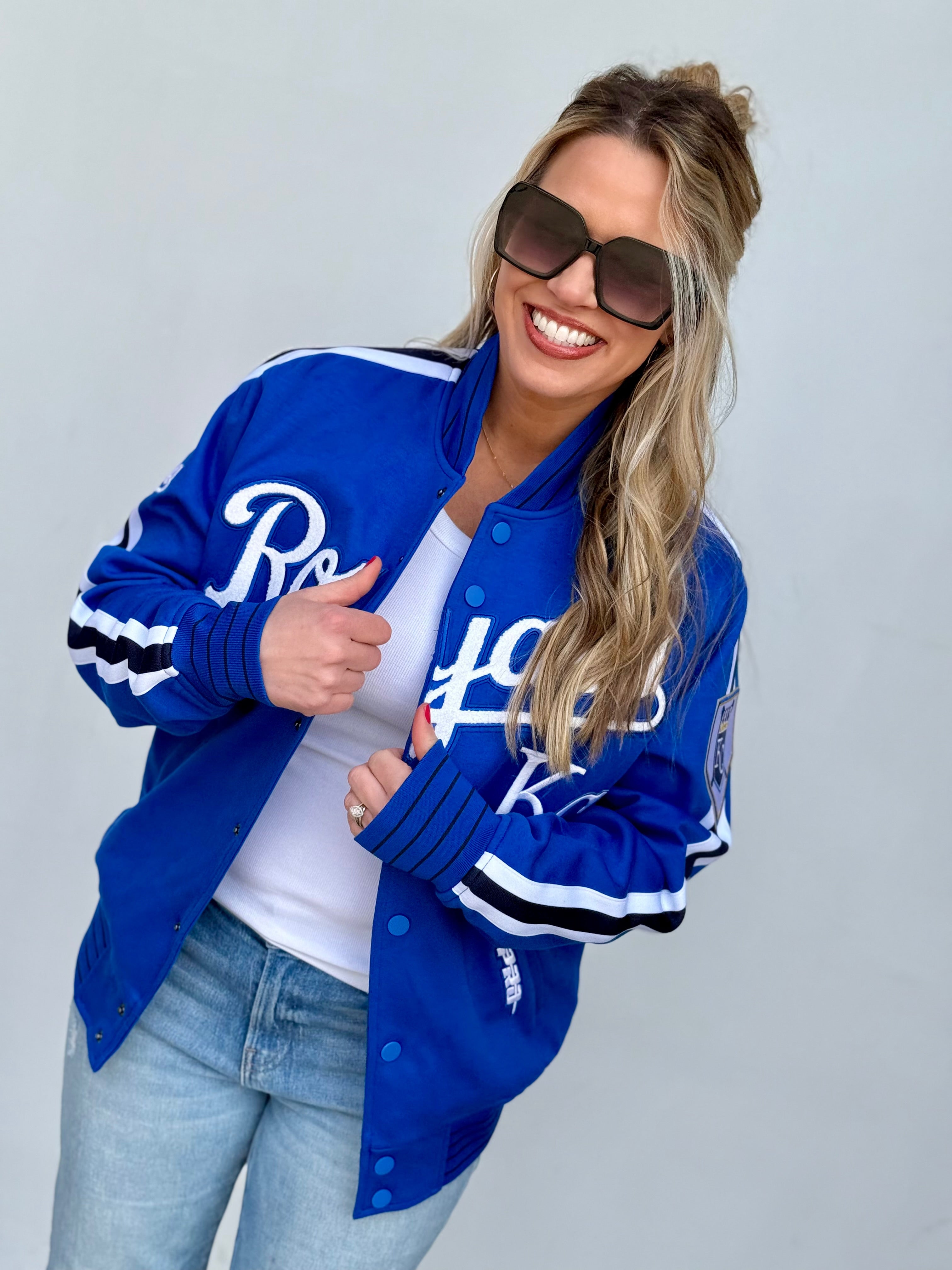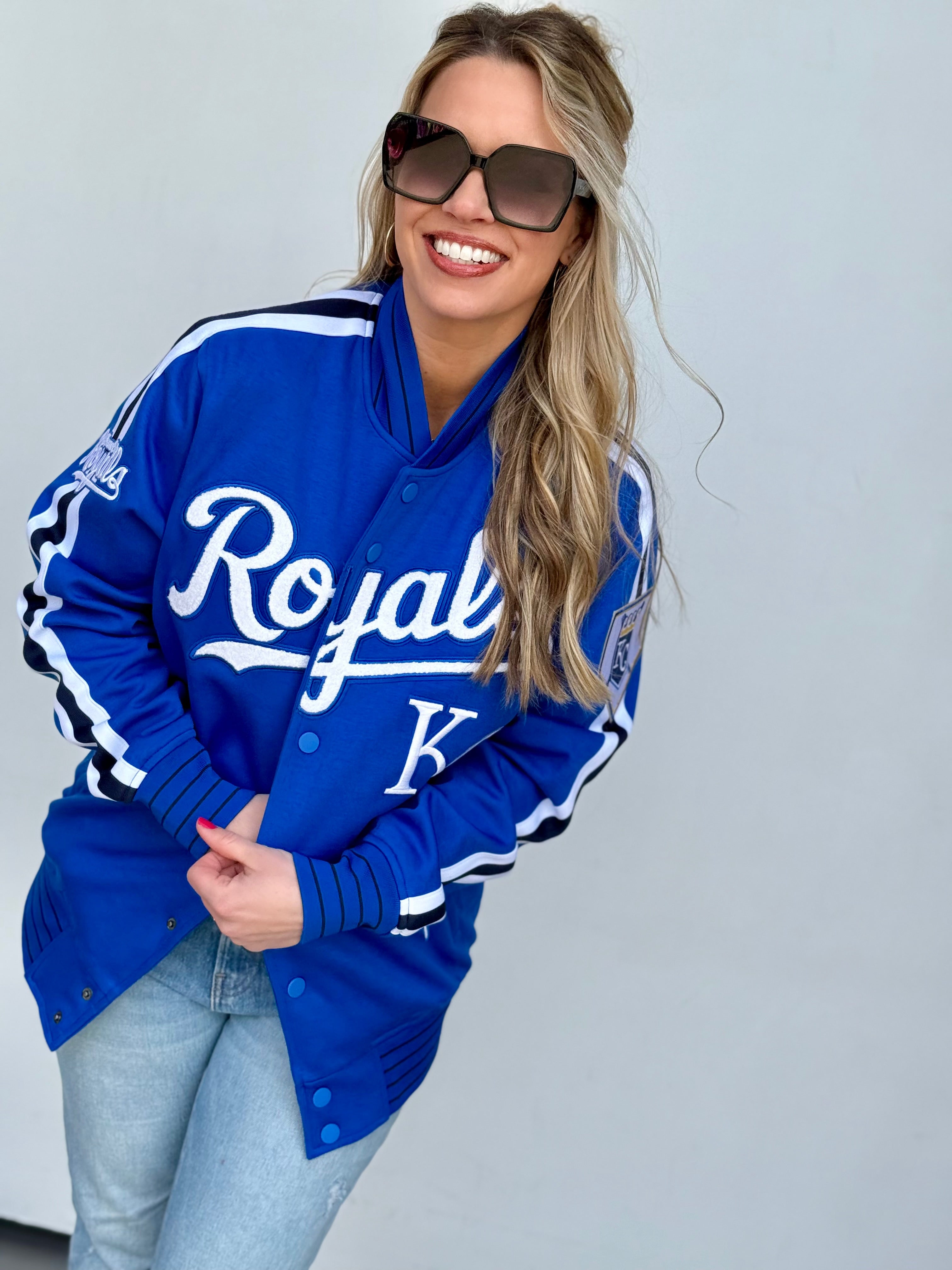 Rock your KC Royals pride with this officially licensed Pro Standard jacket that's got serious style credentials. Featuring bold patchwork details across the front and back, snap button closure, and functional pockets to keep your essentials close, this heavyweight piece is built to last through countless game days. Fair warning: this jacket runs big, so size down for the perfect fit. Whether you're cheering from the stands or just showing your team loyalty around town, this crown jewel delivers comfort and fandom in one package.