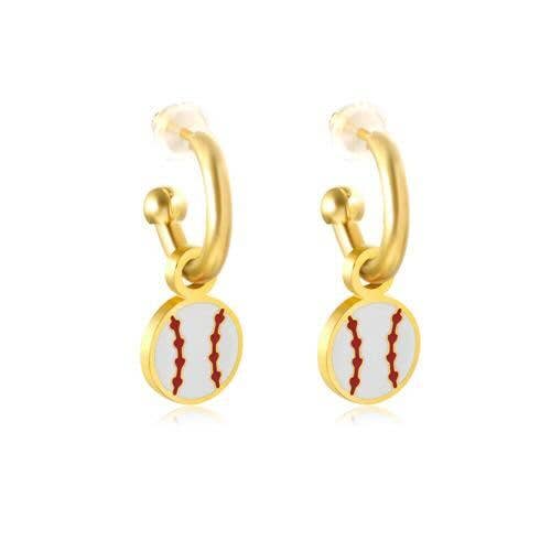 This is an exclusive EB custom design. These generic baseball hoops are perfect for any baseball lover! The hoop and post are gold dipped and feature a baseball charm.