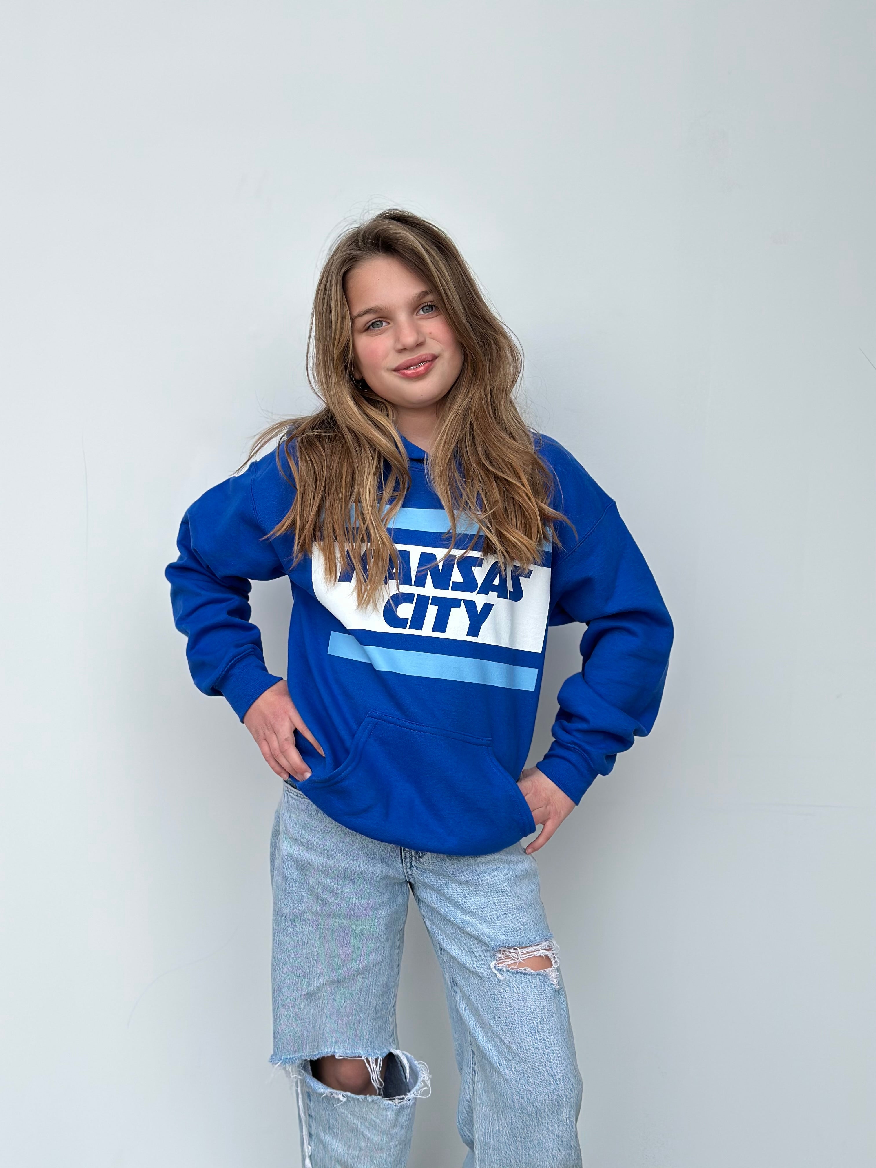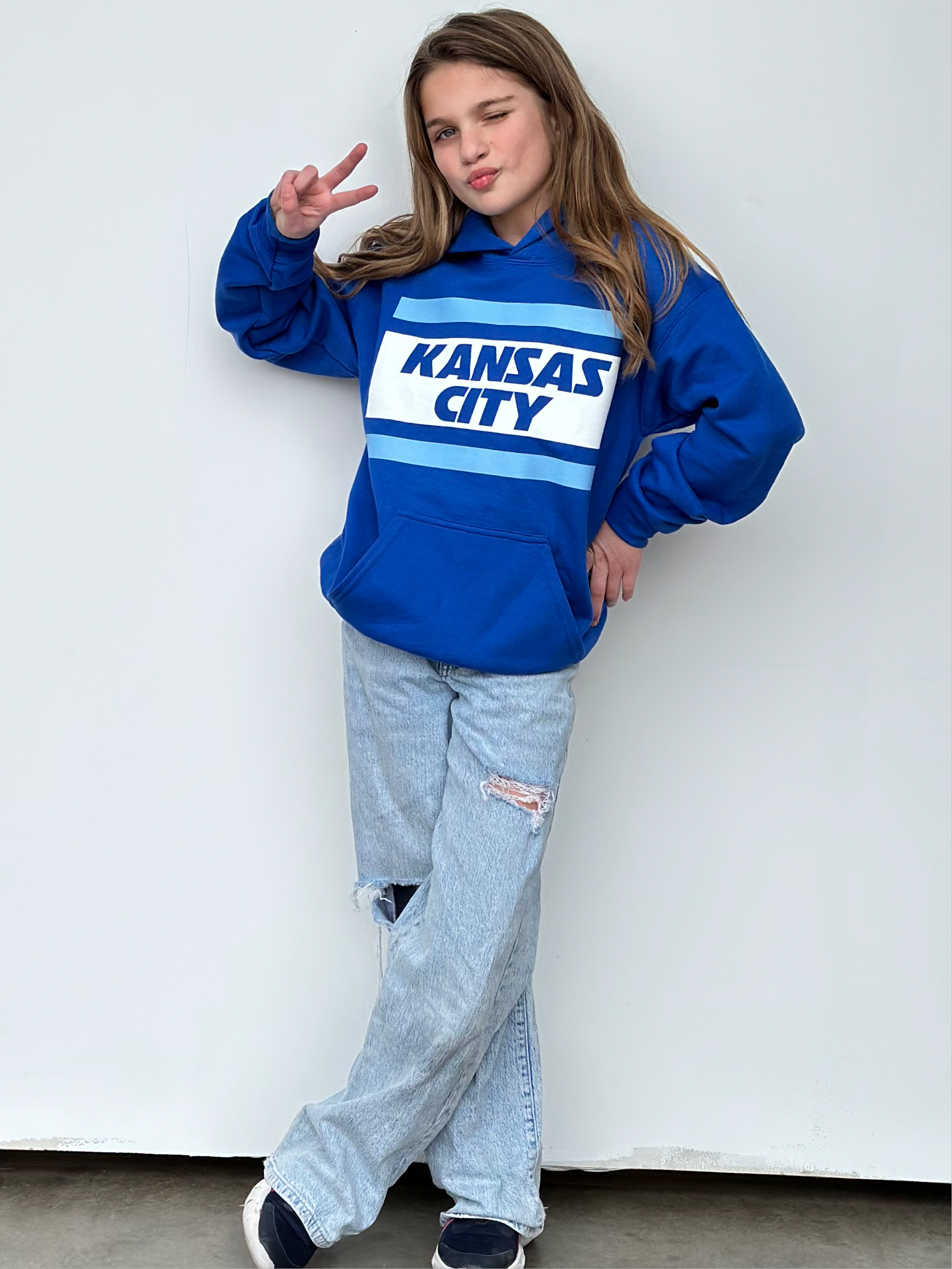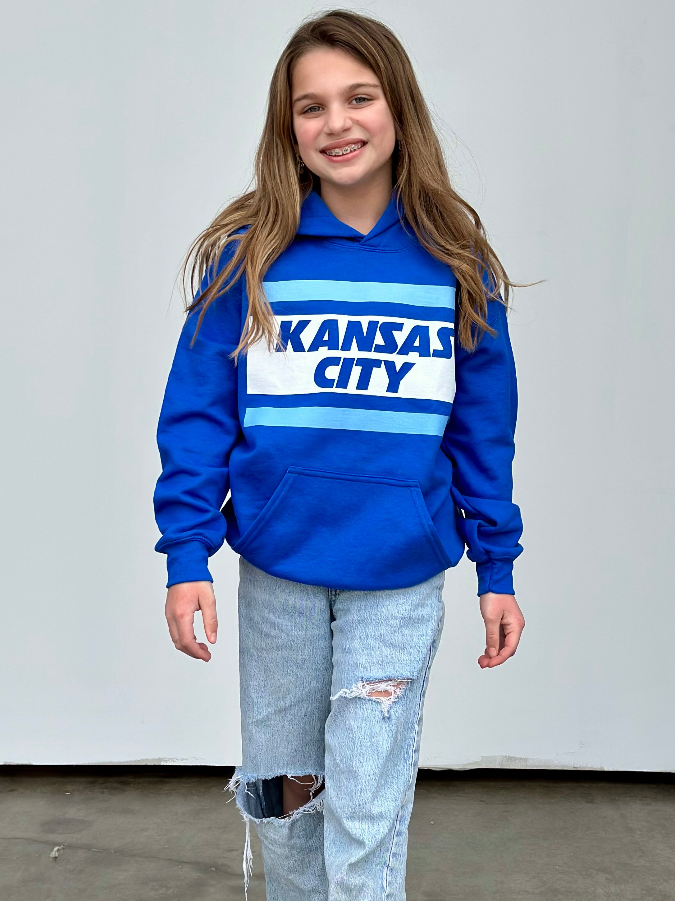 Upgrade your child's wardrobe with the Youth Vintage Blue KC sweatshirt by Gildan. Made with high-quality materials, this sweatshirt is perfect for chilly days. The vintage blue color adds a touch of style to any outfit, while the comfortable fit ensures all-day wear. Keep your child warm and stylish with this must-have sweatshirt.
