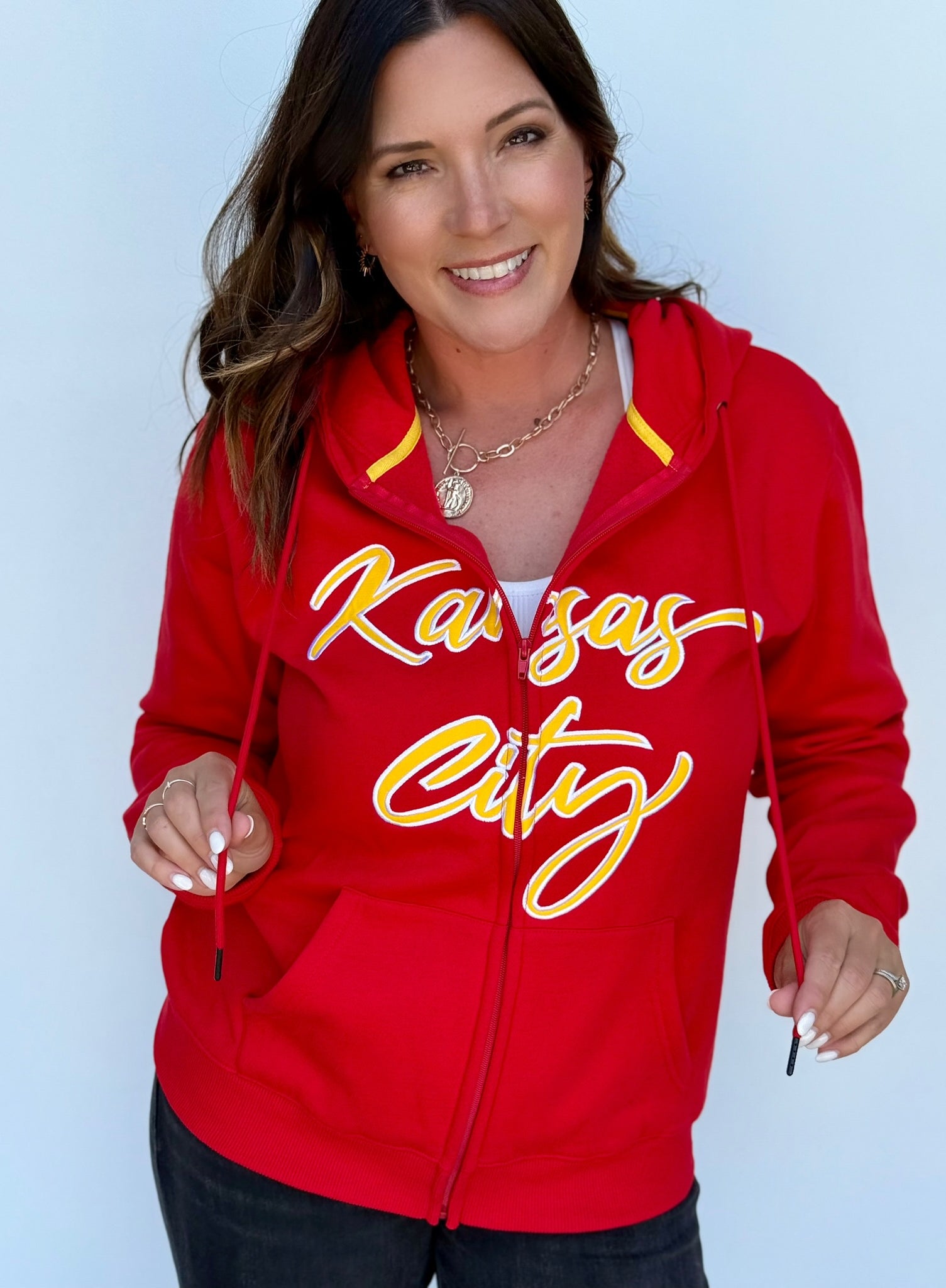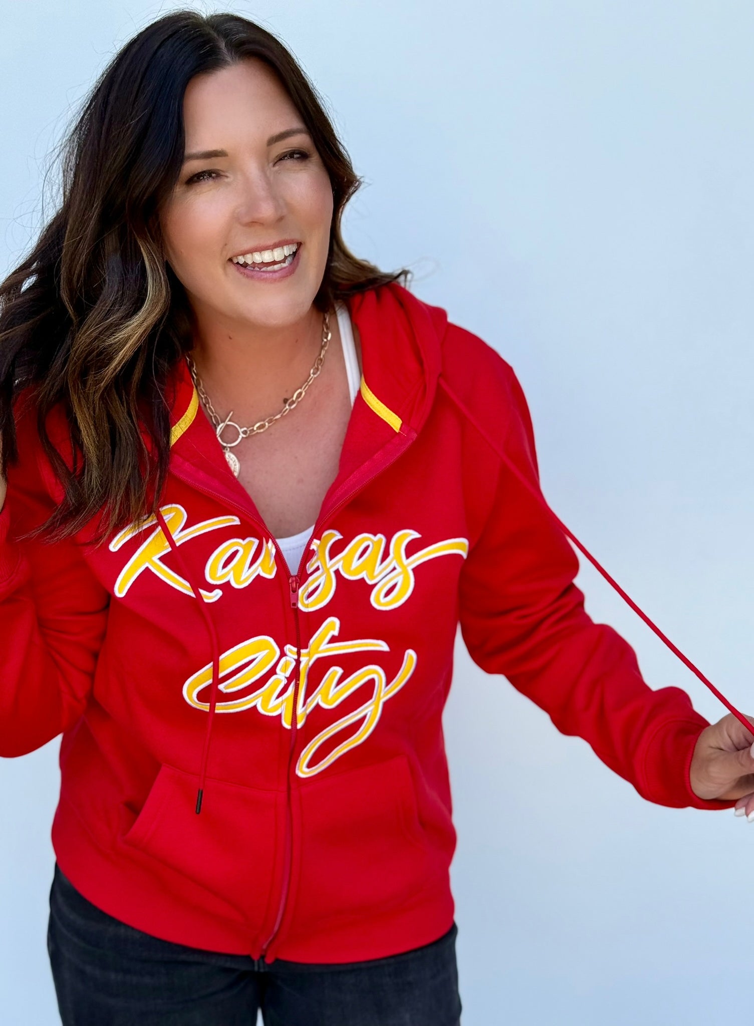 In Kansas City, we celebrate our football team all year long! Shop our huge selection of women's red t-shirts and sweatshirts to cheer on your favorite Kansas City football team. Browse the Kansas City Collection to find a wide variety of women's tops with our favorite KC designs.