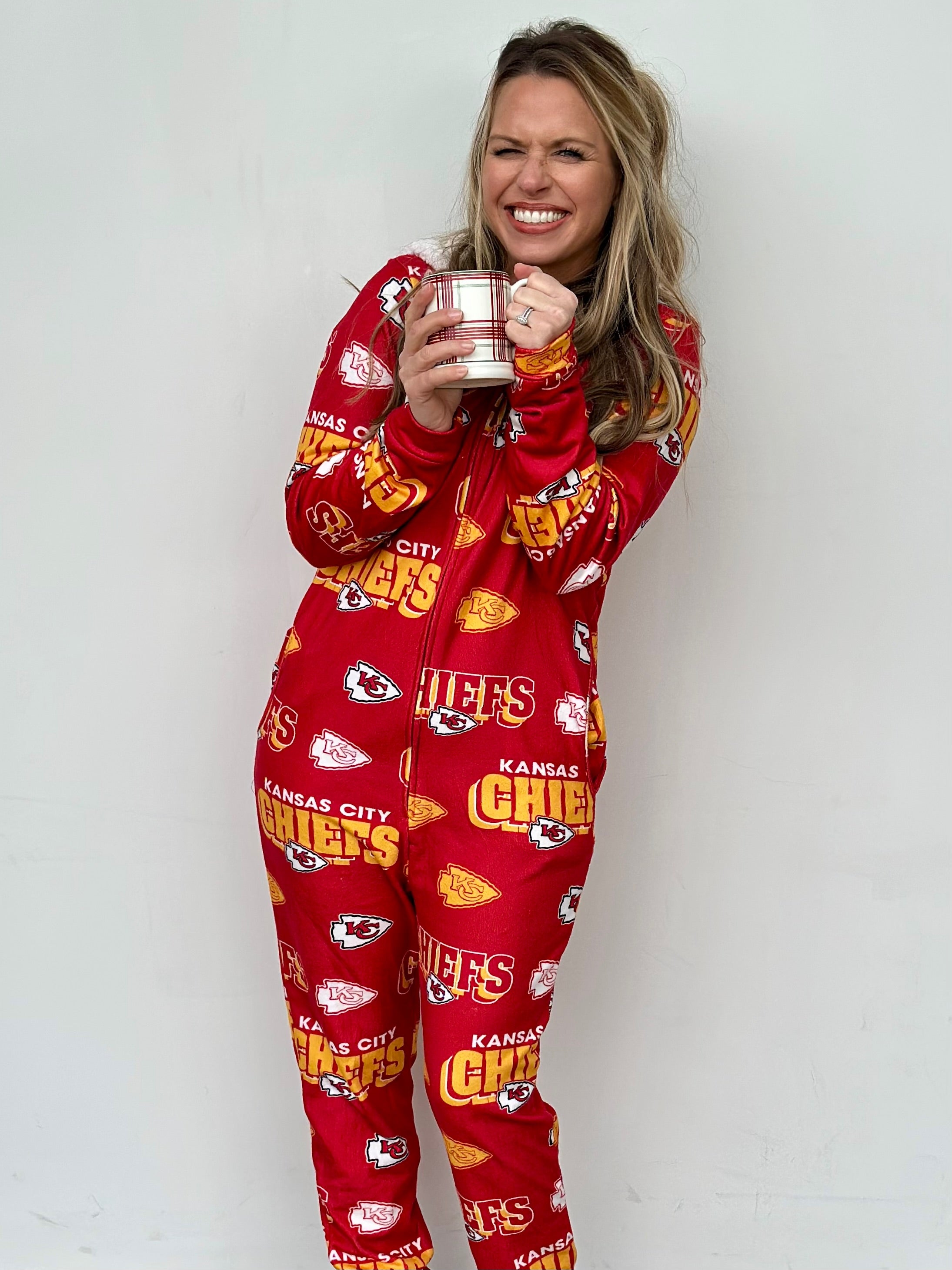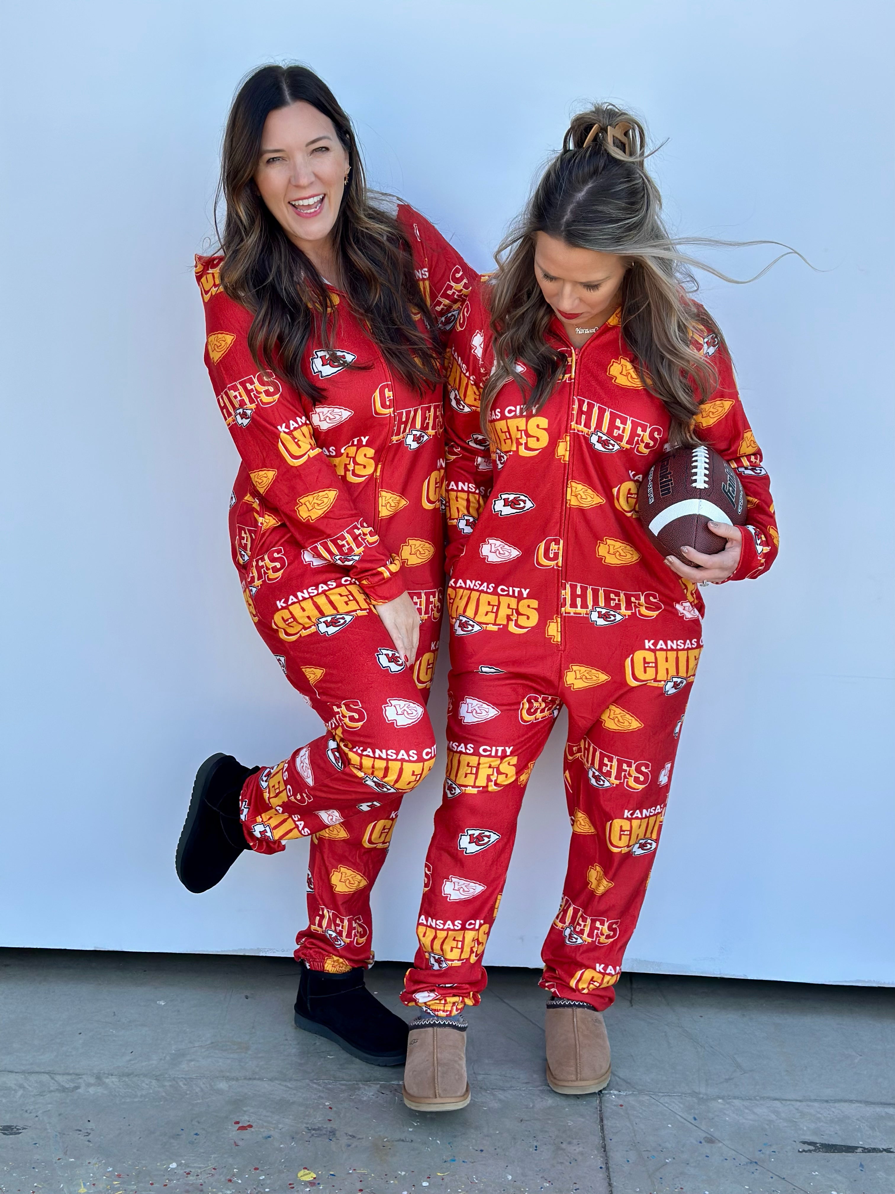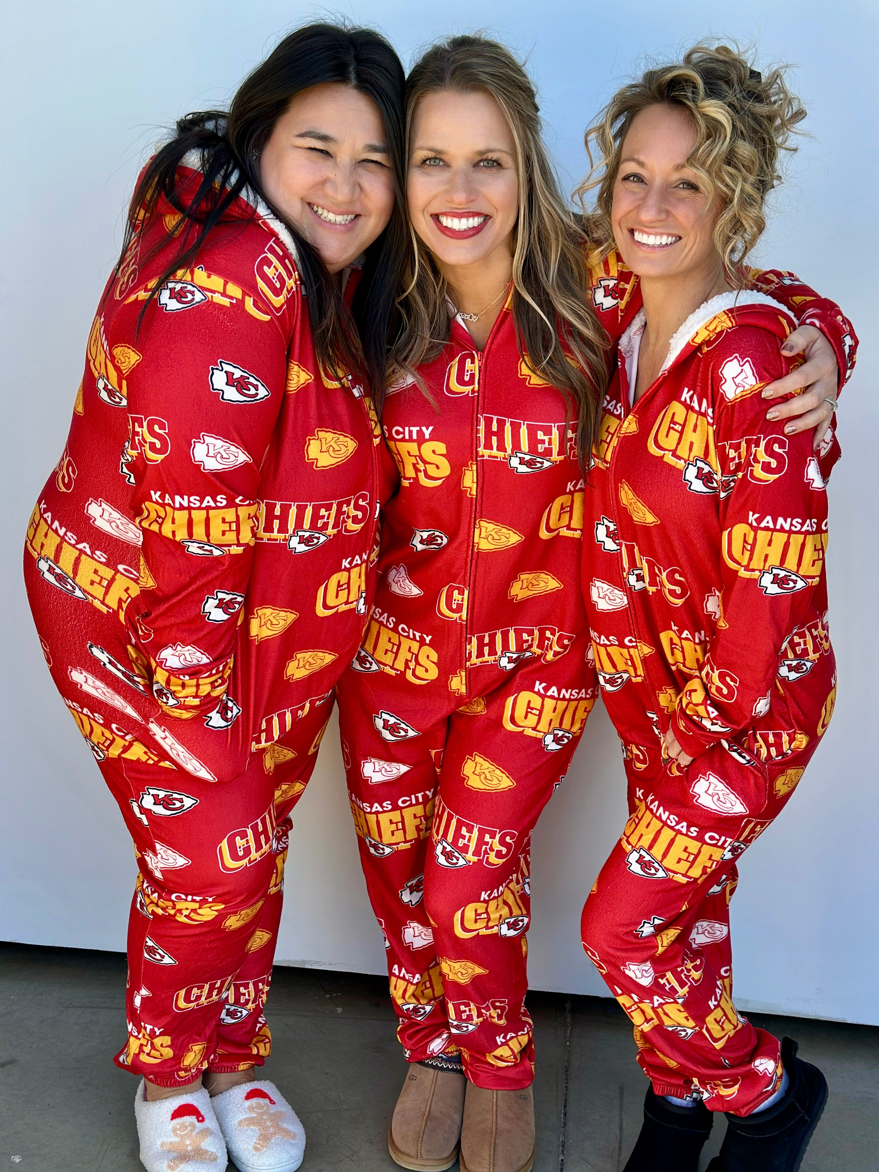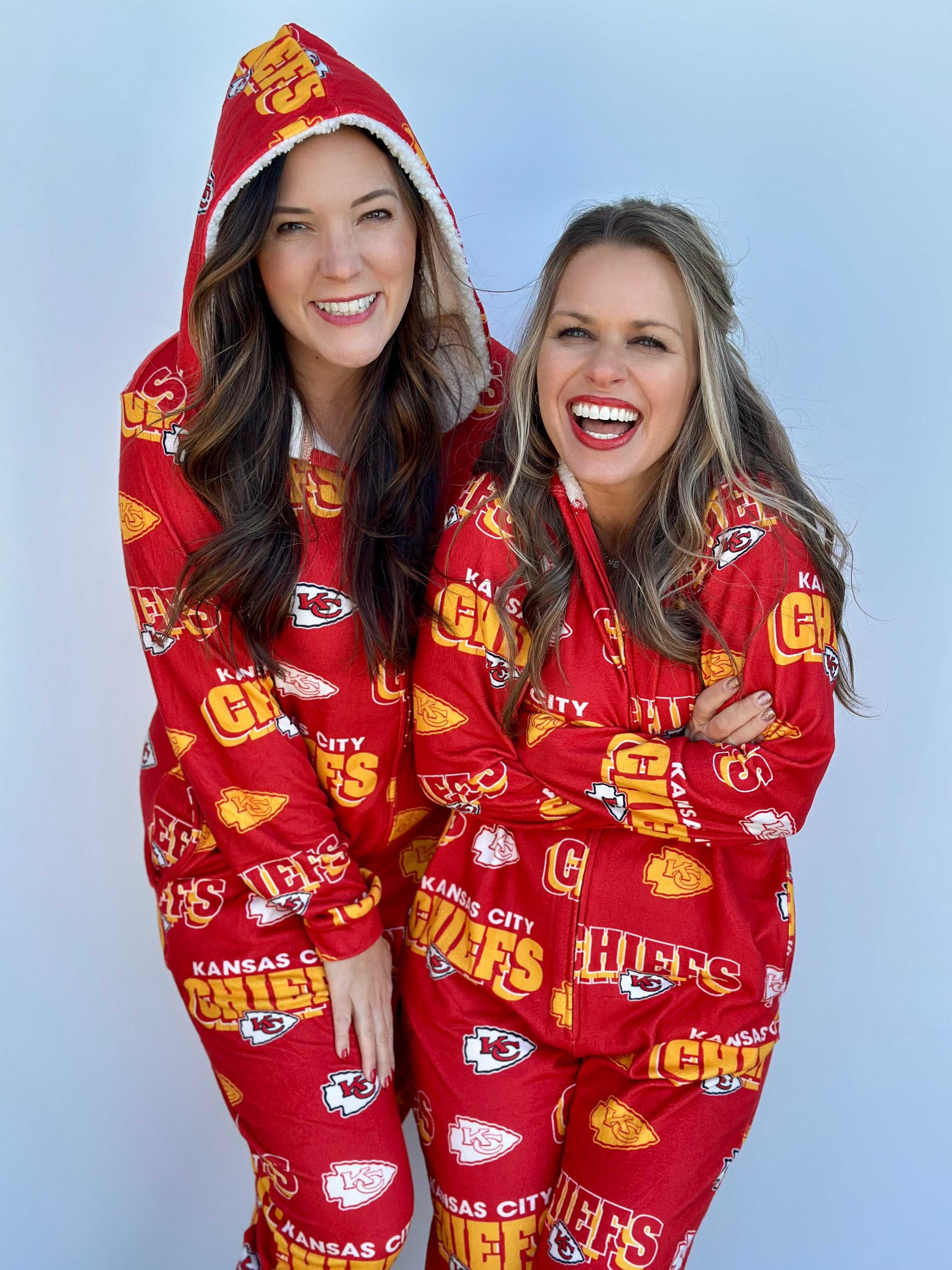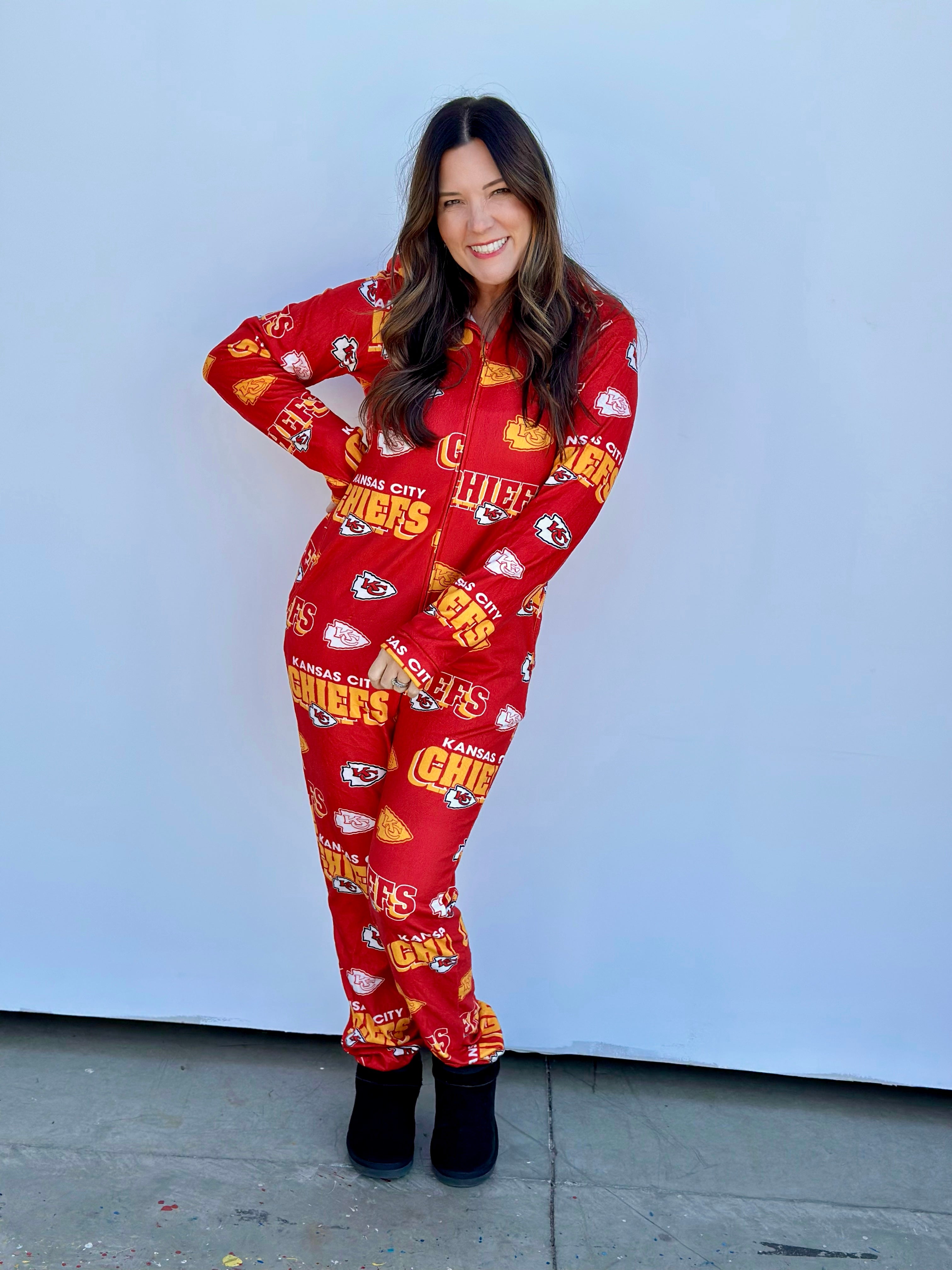 Stay warm and cozy while repping your Kansas City Chiefs with this OFFICALLY LICENSED Microfleece Full-Zip Union Suit. Made from an ultra-soft microfleece blend, this union suit features allover team graphics sublimated into the fabric for a look that's both stylish and cozy. The Sherpa-lined hood adds extra warmth, making it perfect for chilly nights spent cheering on our Kansas City Chiefs!