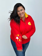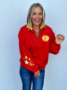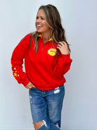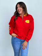 This women’s cut 1/4 zip private labeled sweatshirt is here and ready to make a statement! Featuring a quarter-zip neckline and the most adorable collar with a pop of gold, this sweatshirt is as cozy as it is stylish. It’s more of a women’s cut so if you’re between sizes, you may want to size up one. Perfect for game day or any day you're showing off that KC pride!
