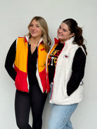 Show your Chiefs pride from every angle with this reversible vest that gives you two bold looks in one. Flip between the cozy white fuzzy side featuring the iconic arrowhead and the vibrant red and yellow side with "Chiefs" emblazoned across the front. Practical pockets on both sides keep your essentials close, while the full zip closure makes layering effortless. Officially licensed and cut to true size, this is the ultimate game day essential for fans who want versatility without compromise.