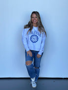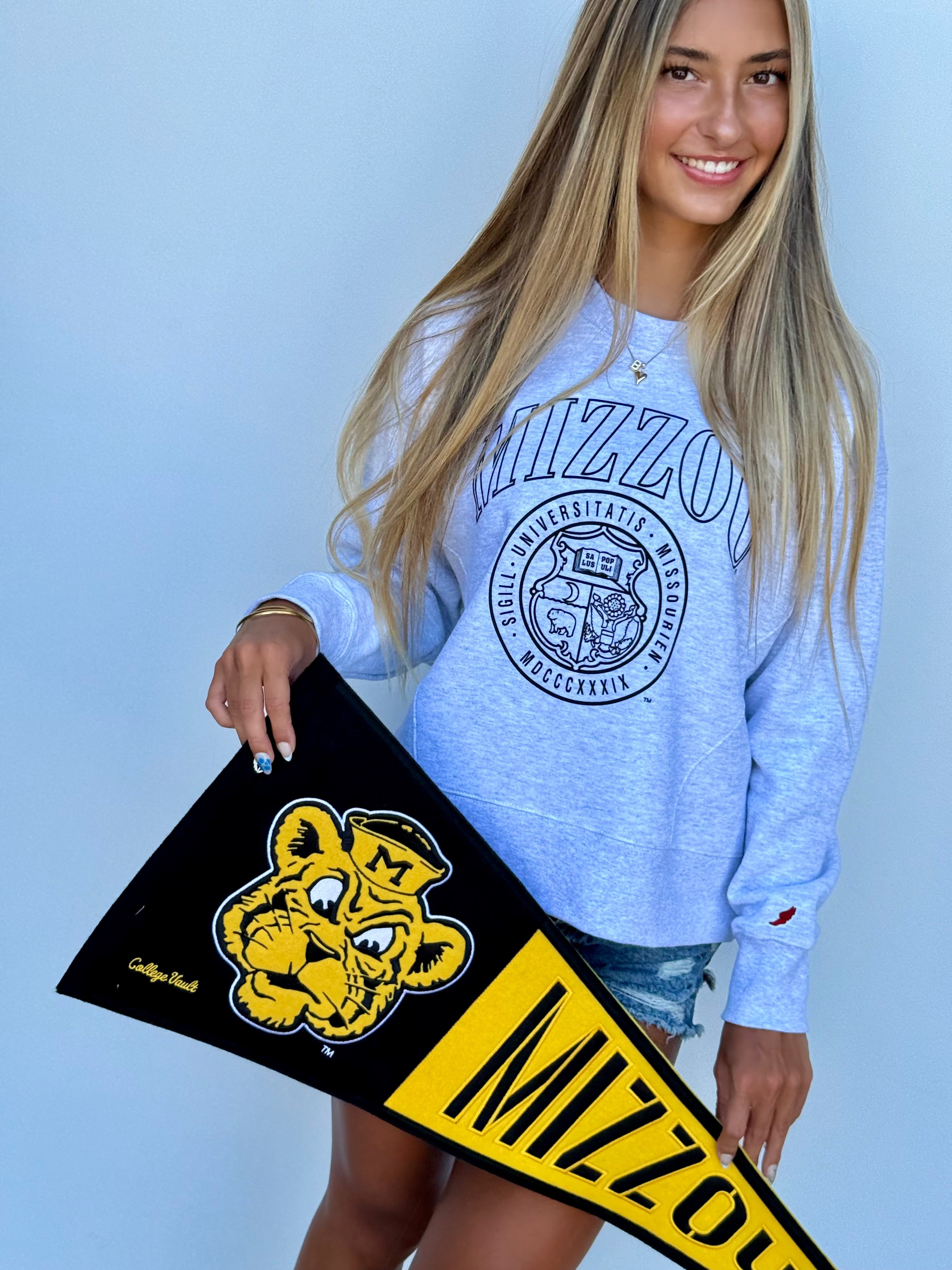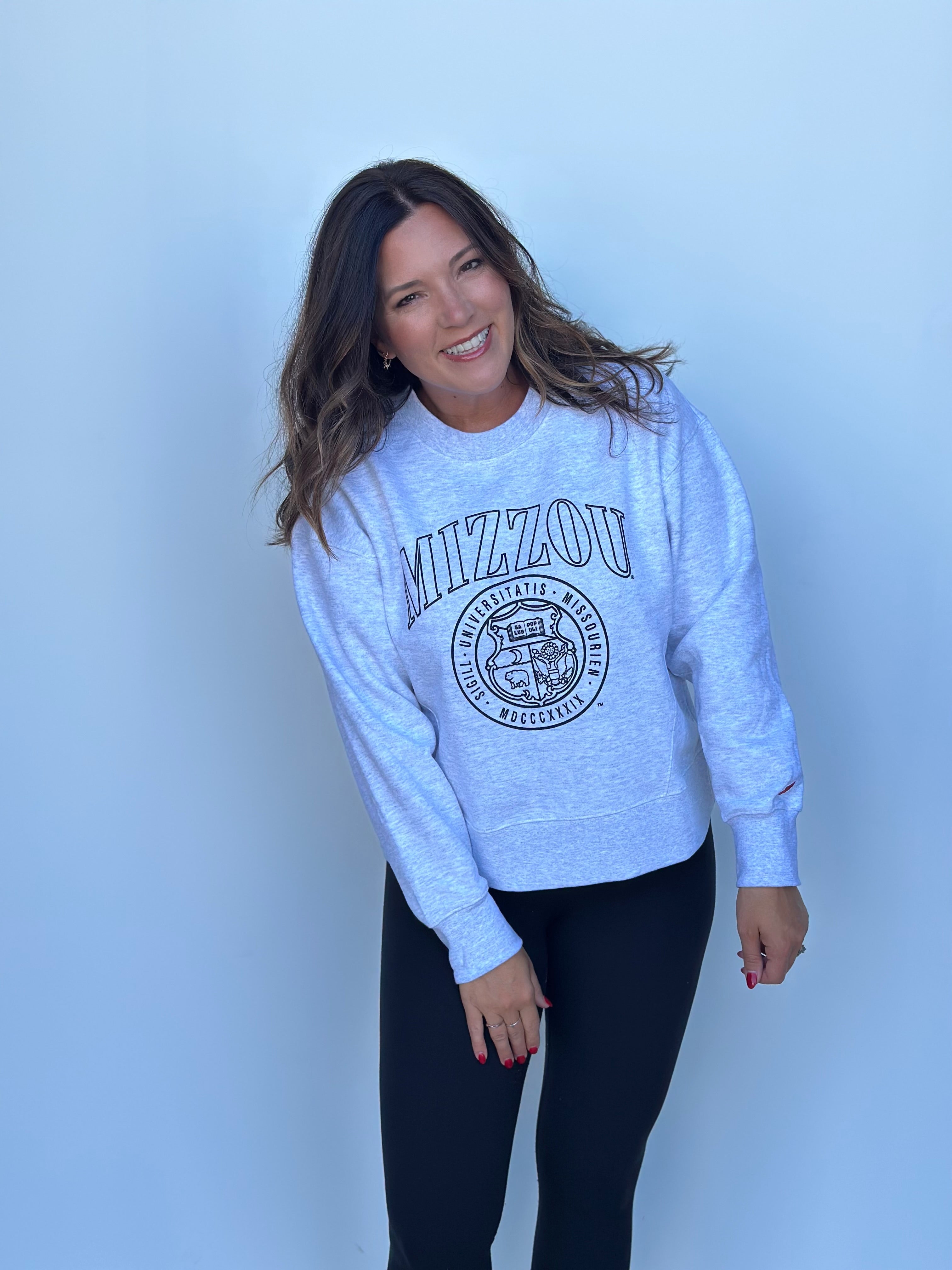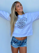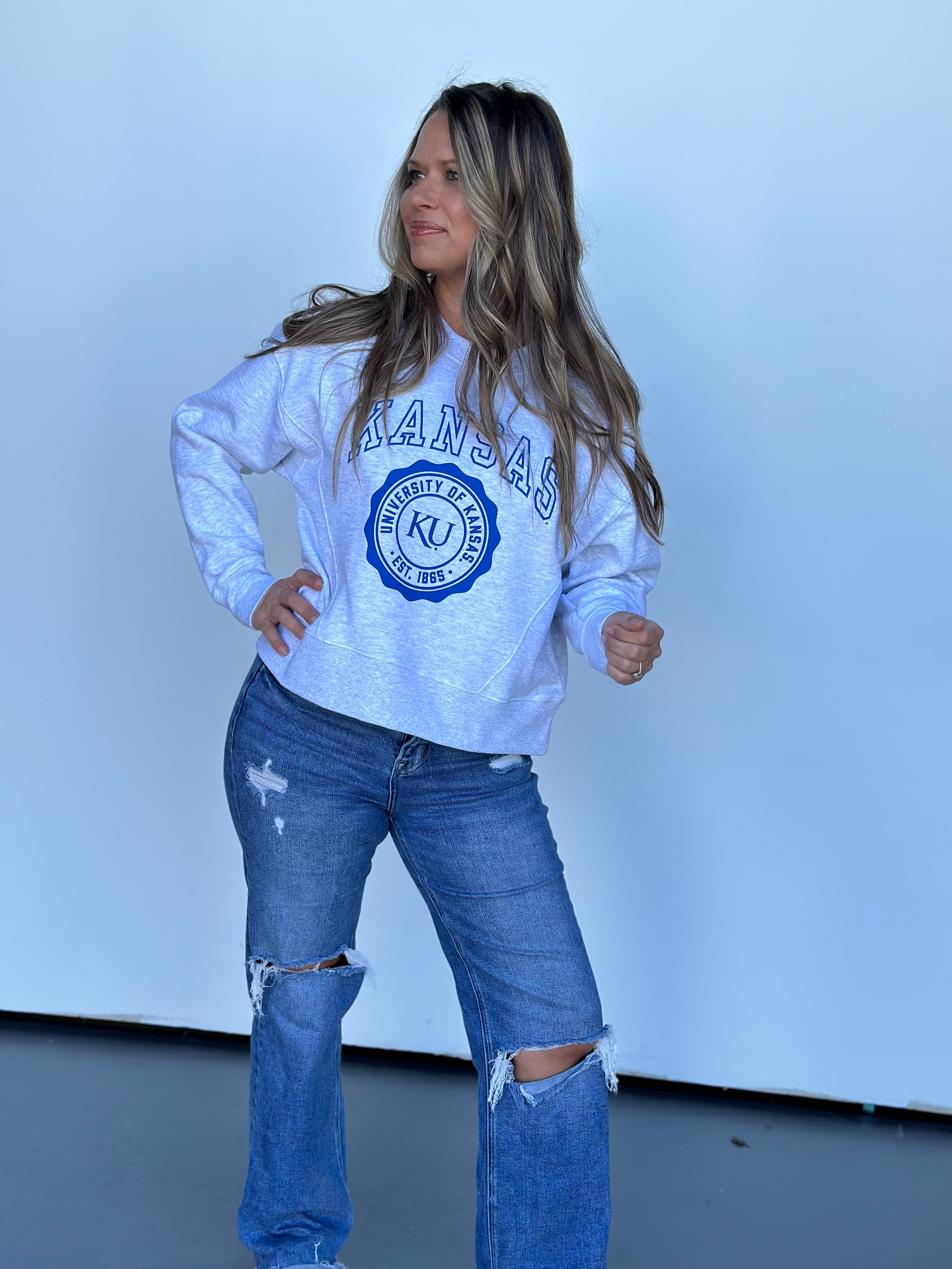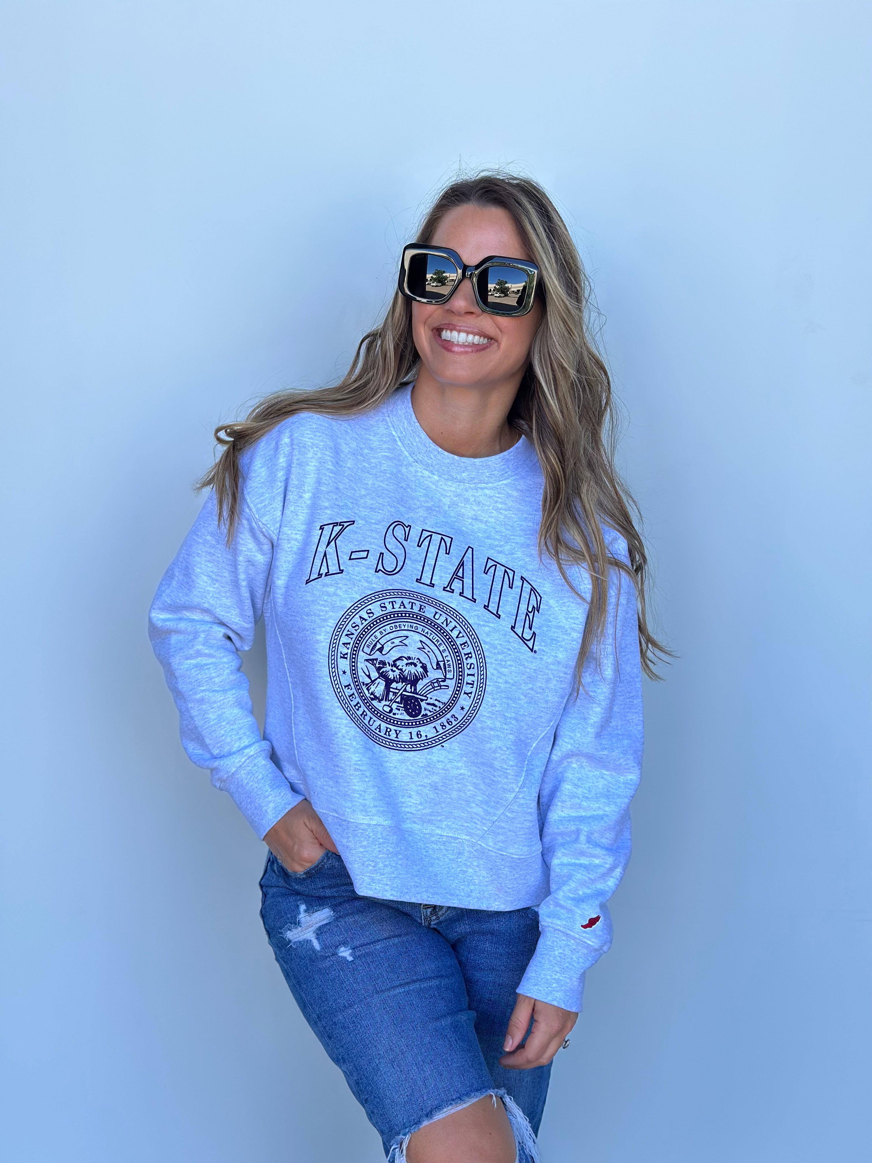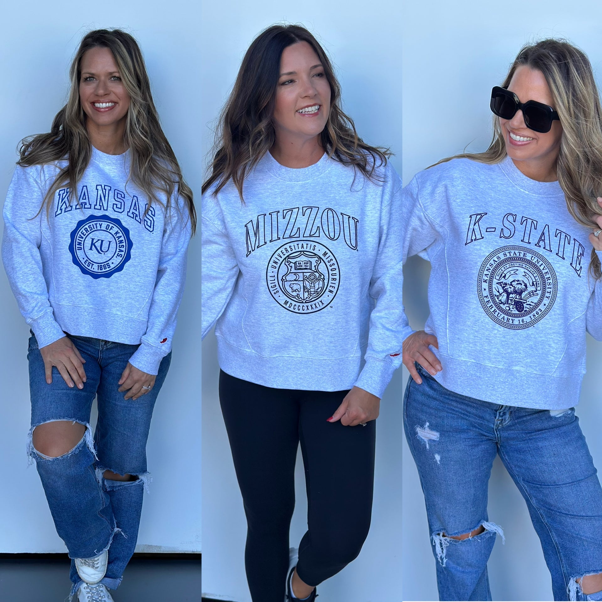 Show off your school spirit in style with our Collegiate Women's Boxy Crew! Perfect for game day or everyday wear, this officially licensed sweatshirt features your choice of K-State, Mizzou, or KU. Stay cozy and represent your team with pride. Go team!