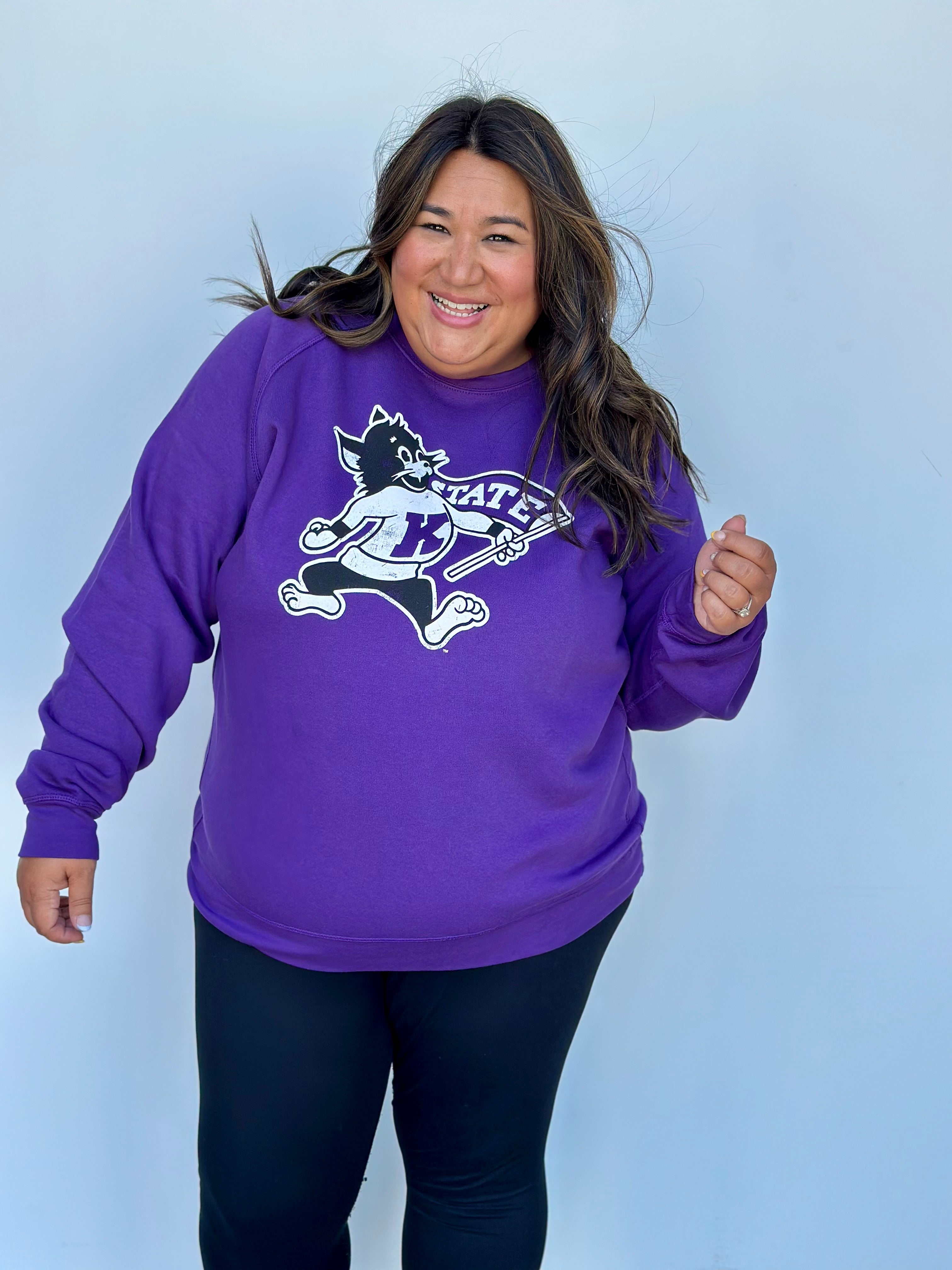 Rock your Kansas State pride with our K-State Retro Willie Crewneck! Made with a soft crewneck, this officially licensed shirt features none other than Willie the Wildcat. Perfect for any fan looking to show off their love for the Wildcats (and Willie) in a playful, quirky way. Go 'Cats!