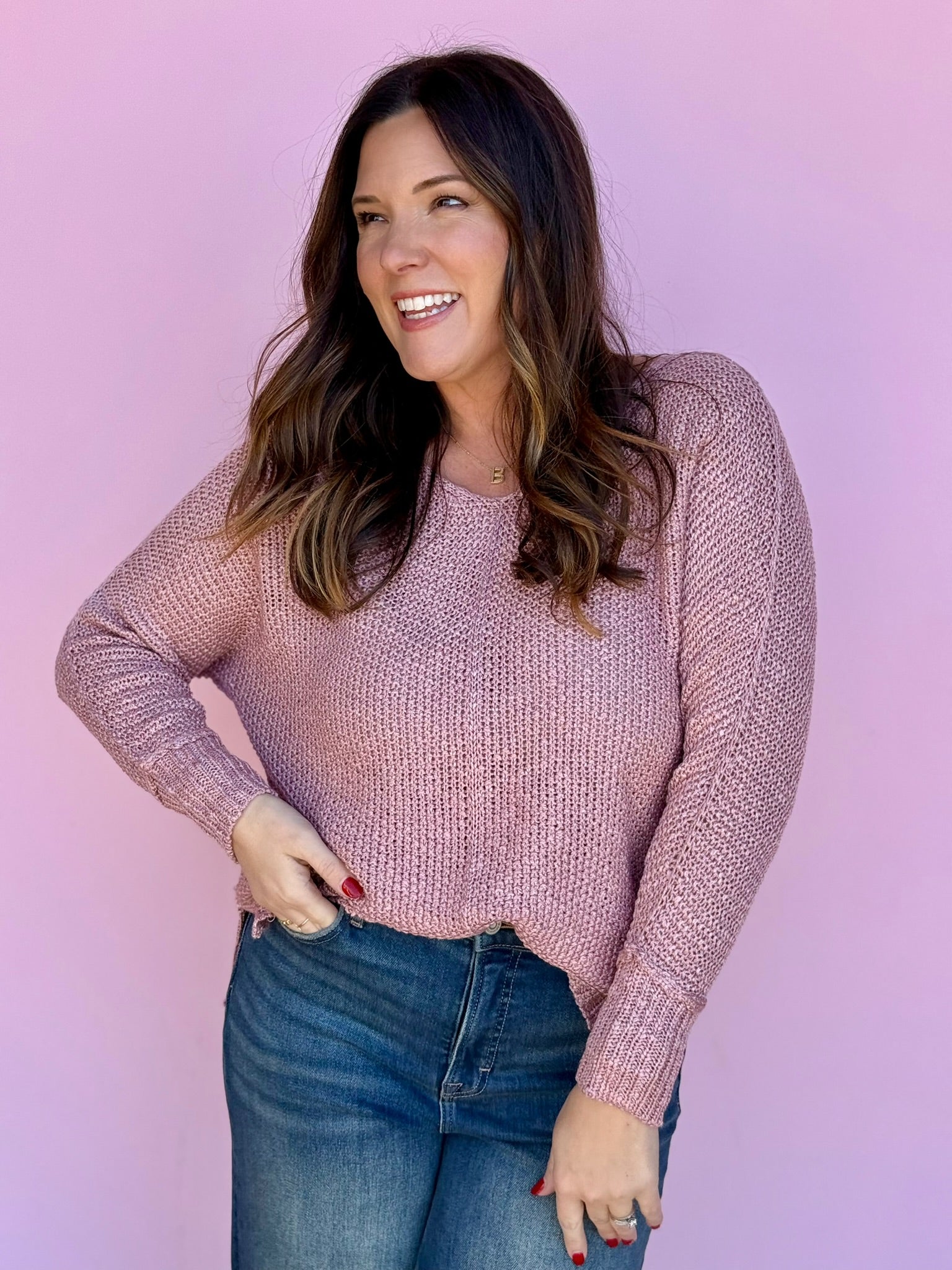Slip into effortless comfort with this mauve loose fit sweater that's anything but basic. Featuring reverse seams for a polished, inside-out aesthetic and a lightweight knit that won't weigh you down, it's the perfect layering piece for any season. The oversized silhouette drapes beautifully, while subtle side slits add just enough edge to keep things interesting. Cozy, cool, and ready for whatever your day throws at you.