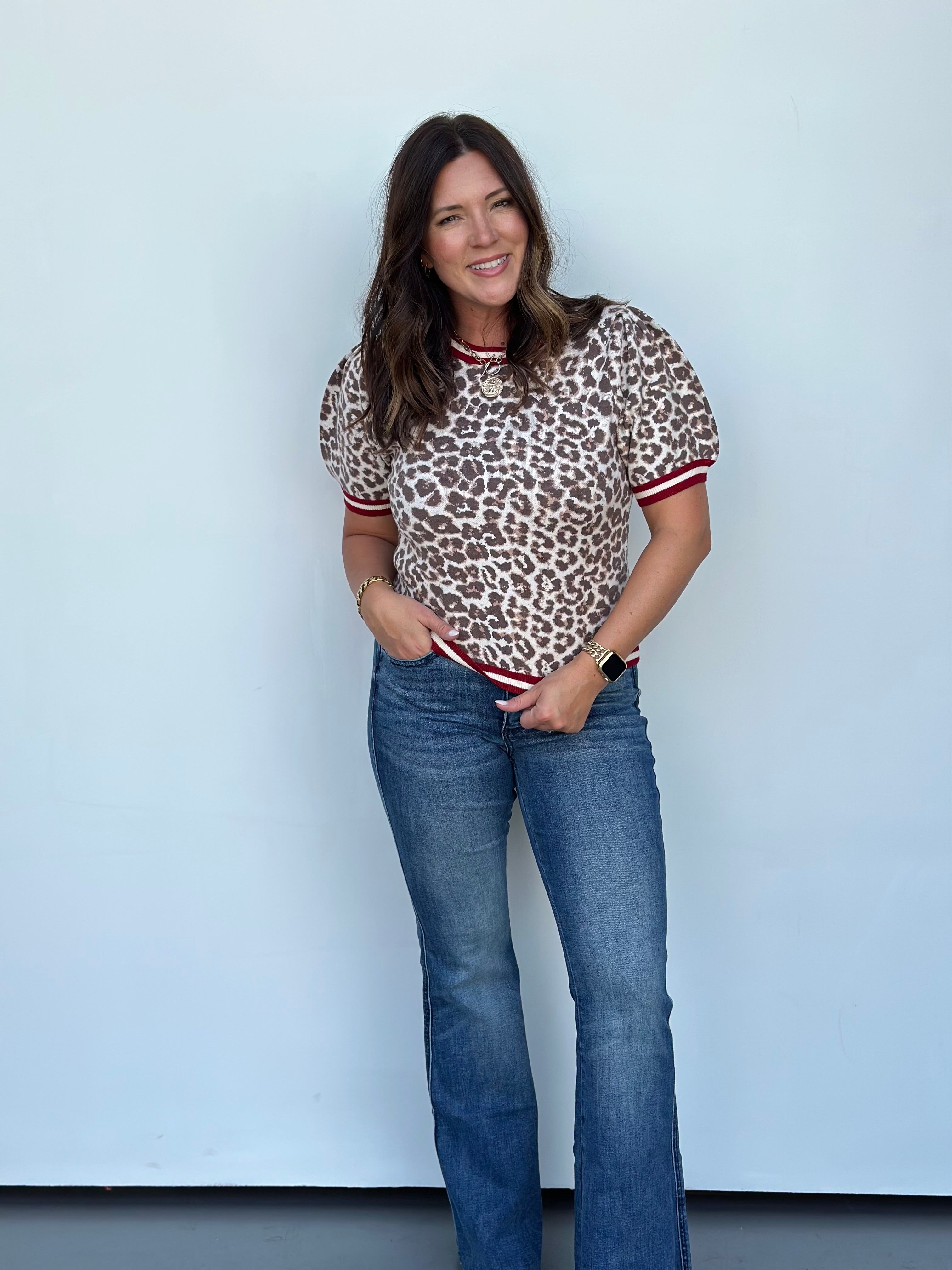 Embrace your wild side with the Wild About You Leopard Top! This lightweight, short sleeve sweater features playful stripes on the collar, hem, and sleeves, making it the perfect pick for fall’s in-between days. True to size and effortlessly stylish, it’s ready to add a fun, fierce touch to your wardrobe.